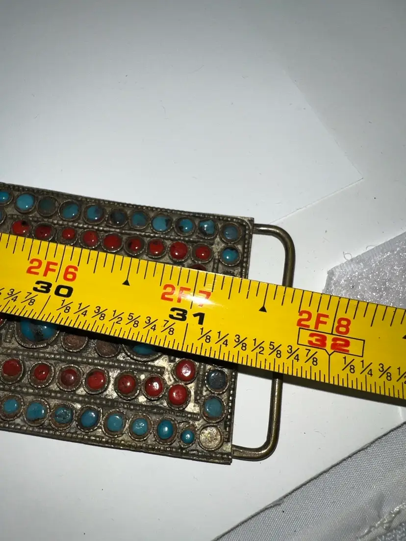 This pre-owned belt is a great addition to any outfit and is sure to make a statement. The beautiful colors and intricate design make it a perfect accessory for any occasion. Don't miss out on this vintage gem!