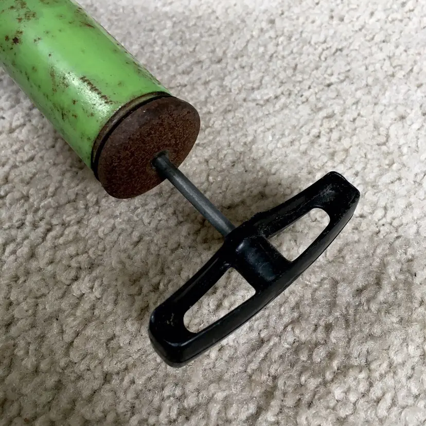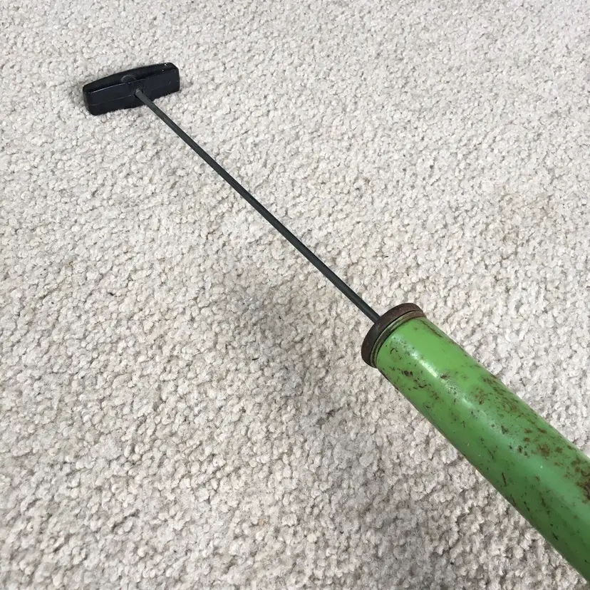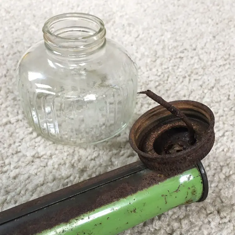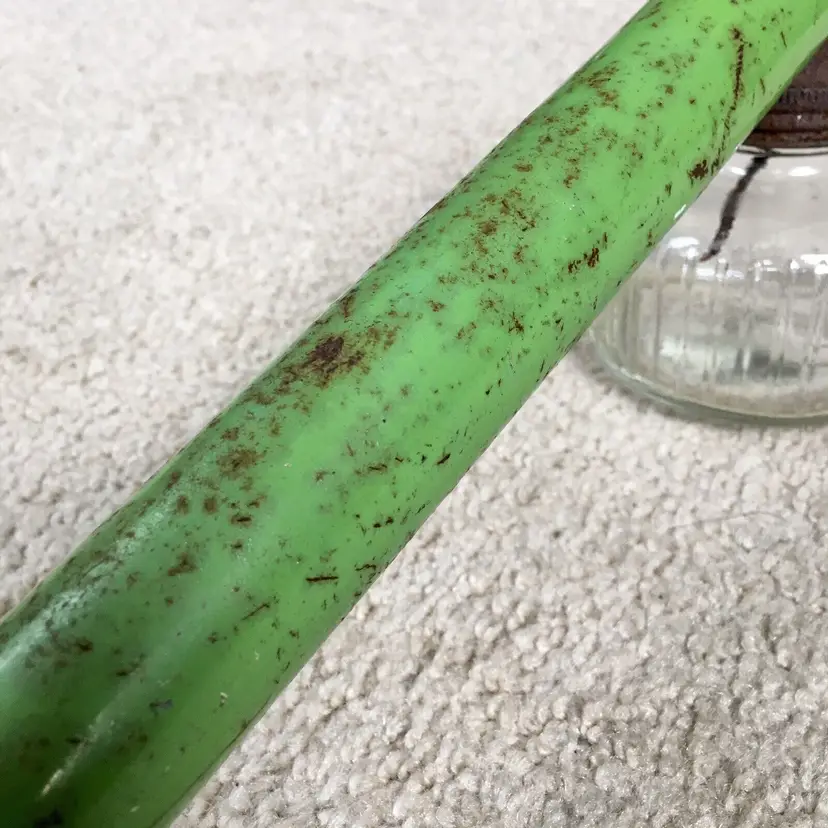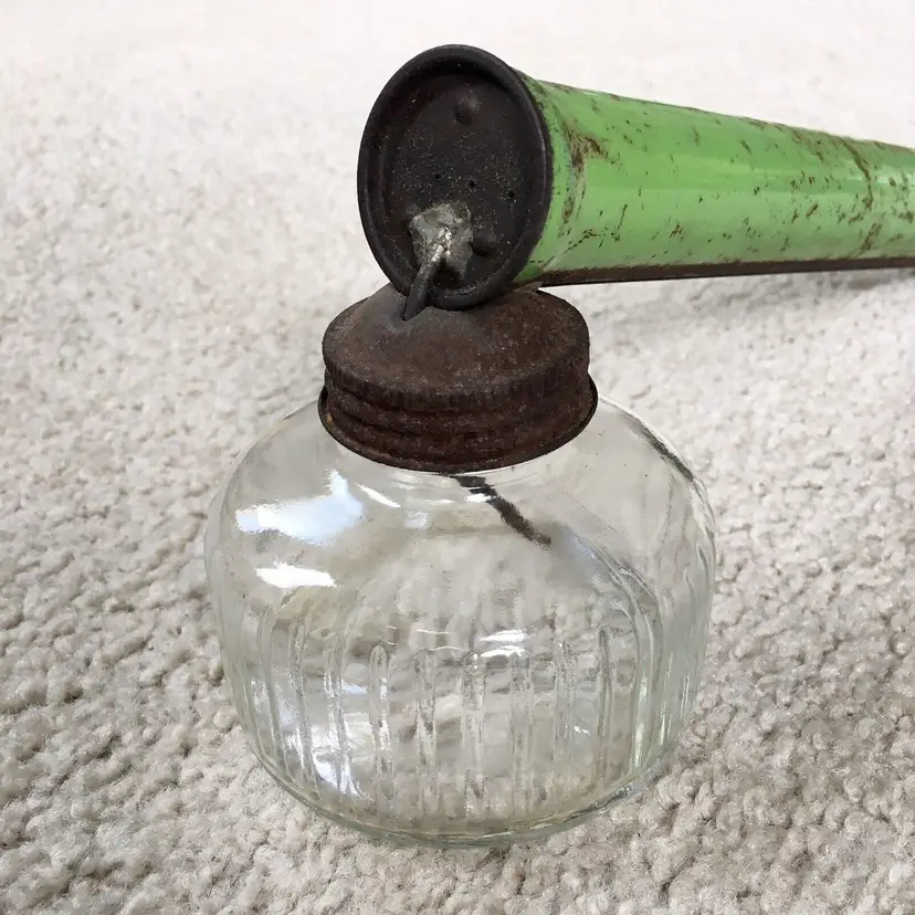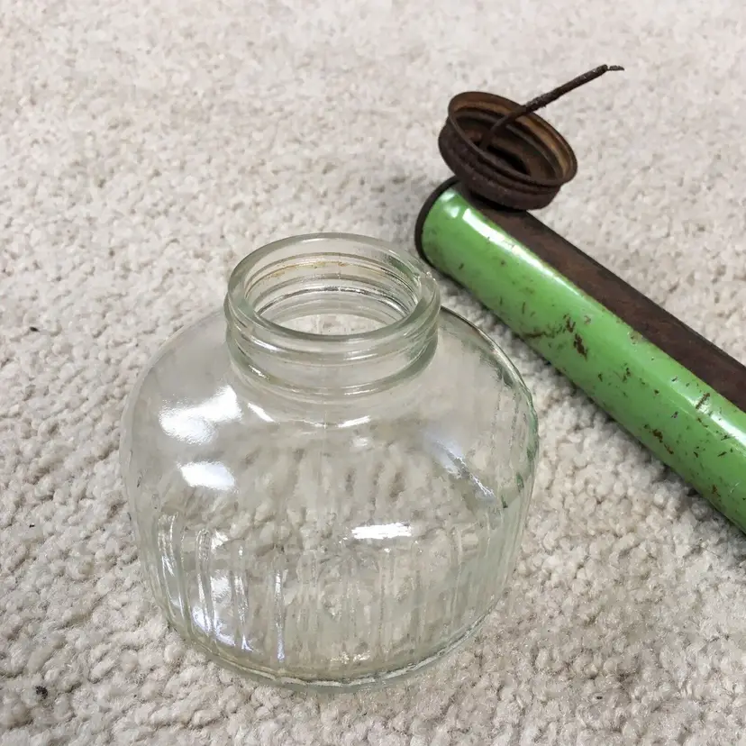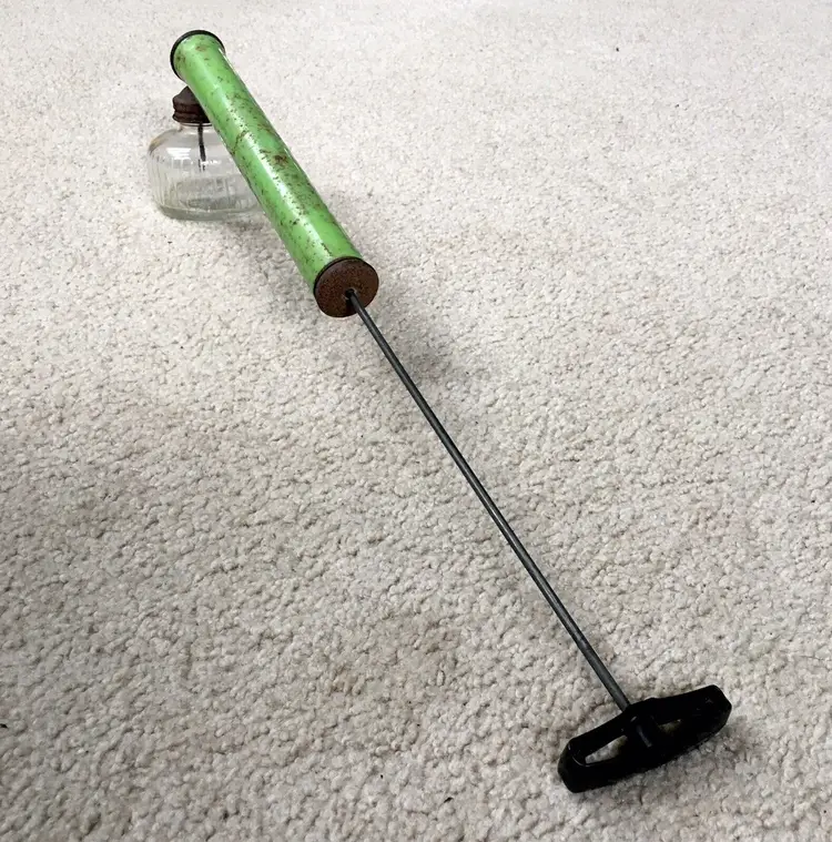 Vintage bug insect metal pump sprayer/duster with clear glass tank jar made by Hudson Manufacturing Co. in Chicago, Illinois. Missing original paper label, but definitely made by Hudson. Dates to about the 1950s. Good overall condition with scratches and wear to the original Old World green paint. Surface rust as shown. Has a great rustic patina and ready for display or actual use!! Untested but pump handle extends as normal and there’s very good compression when pumping. Small streams of air come out the front openings of the sprayer as normal when pumped. Clear glass tank jar unscrews from sprayer as normal. No cracks or chips to the ribbed glass. Minor chemical residue inside jar. Black plastic pump handle with small crack, but still functional. Sprayer measures about 13.25” long with handle in closed position, and 22” long when fully extended. See pics for more details.