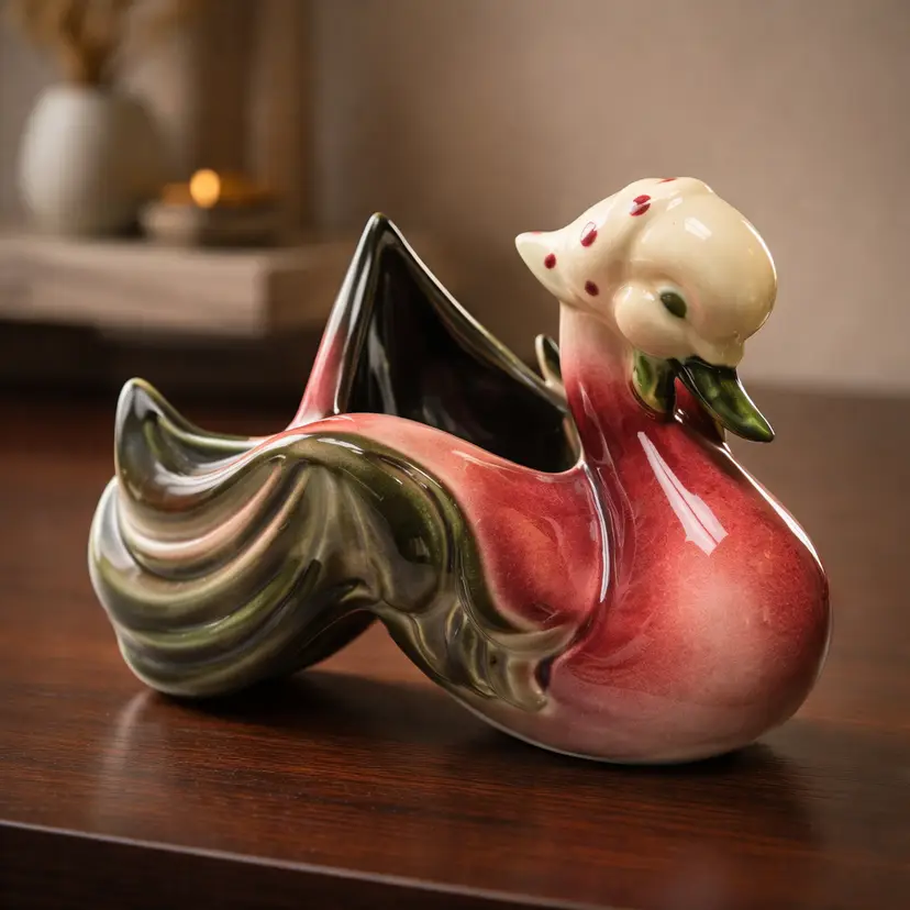 Vintage 1950's Hull Pottery Swan/Duck Planter w/ Polka Dot Head Scarf