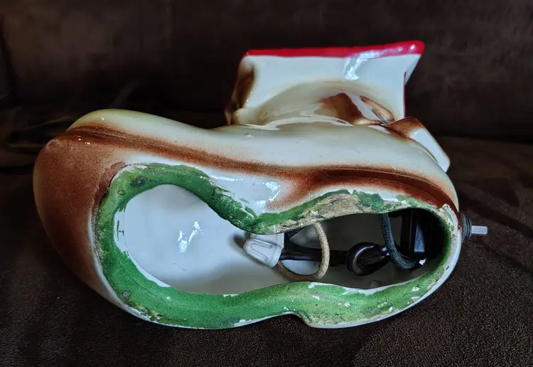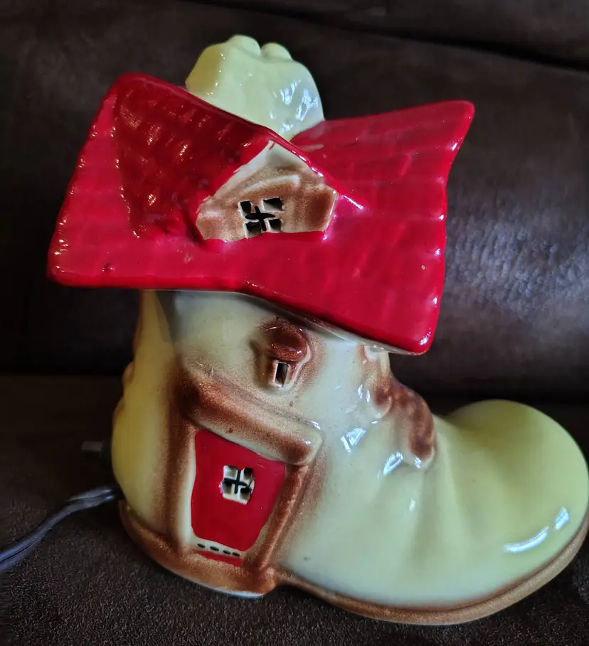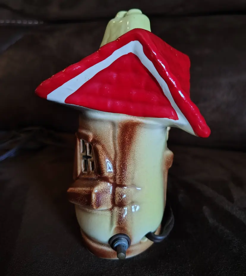 Great cond. Adorable! Works, but would need a new plug for safety. (Easy to do) 6.5" x 6.0" x 3.75".