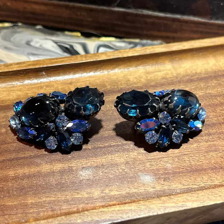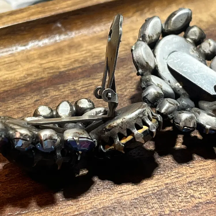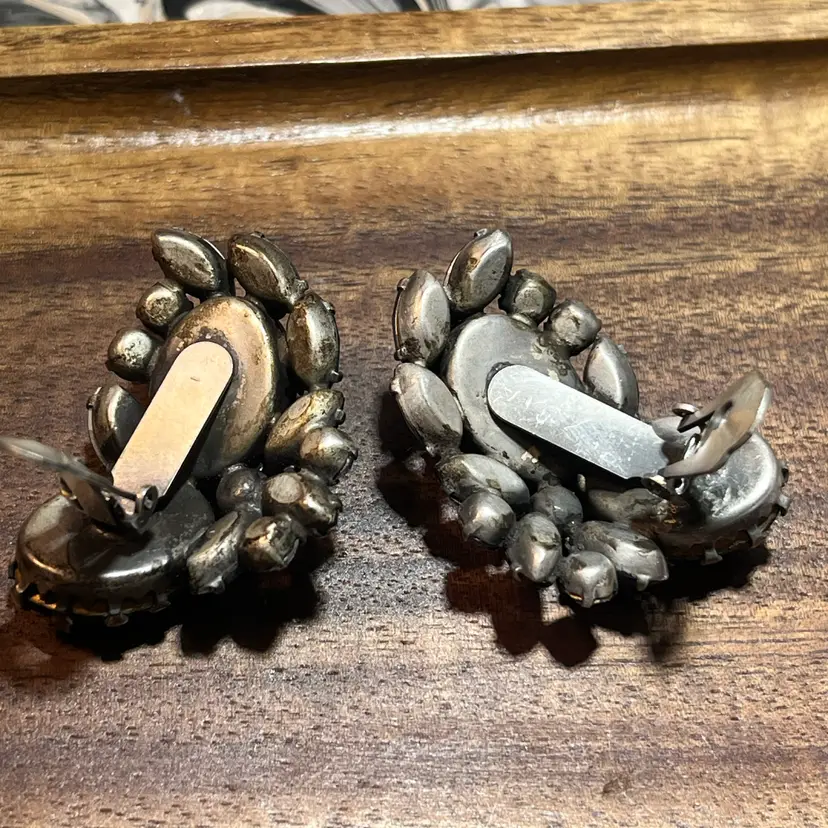 Unsigned but features high-end designer construction with puddled soldering and open-back rhinestones. Stunning 1950s 'Red Carpet' style