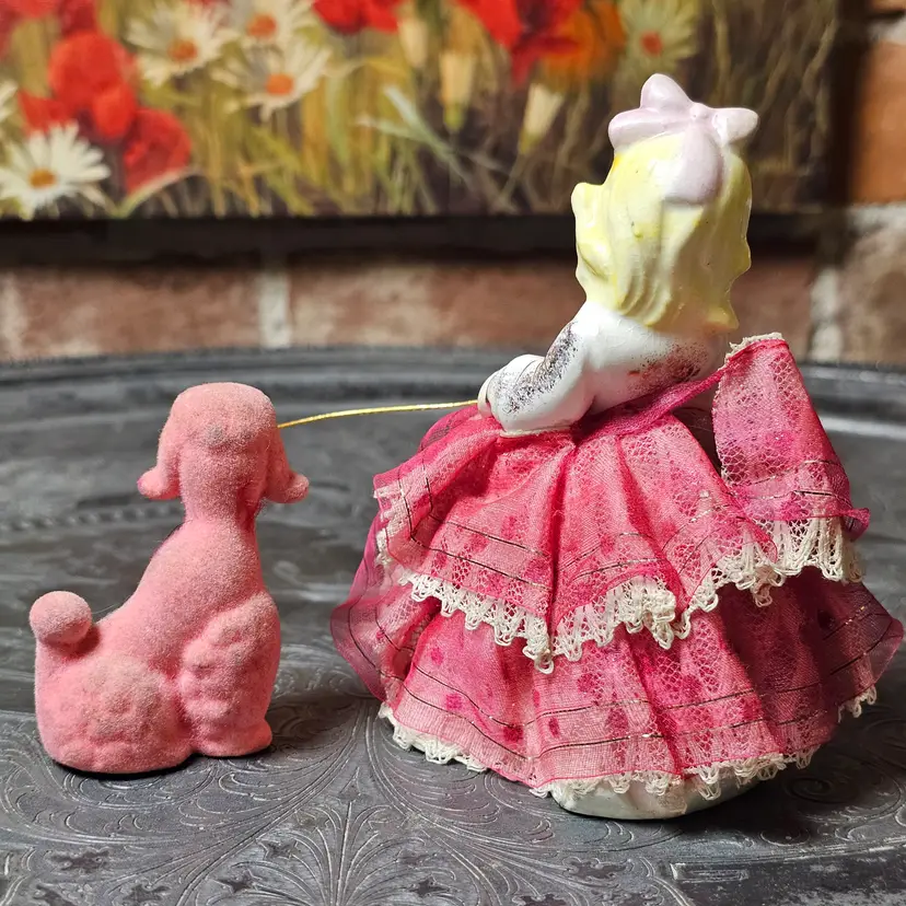 Material: Hand-painted ceramic with fabric dress & flocked poodle
