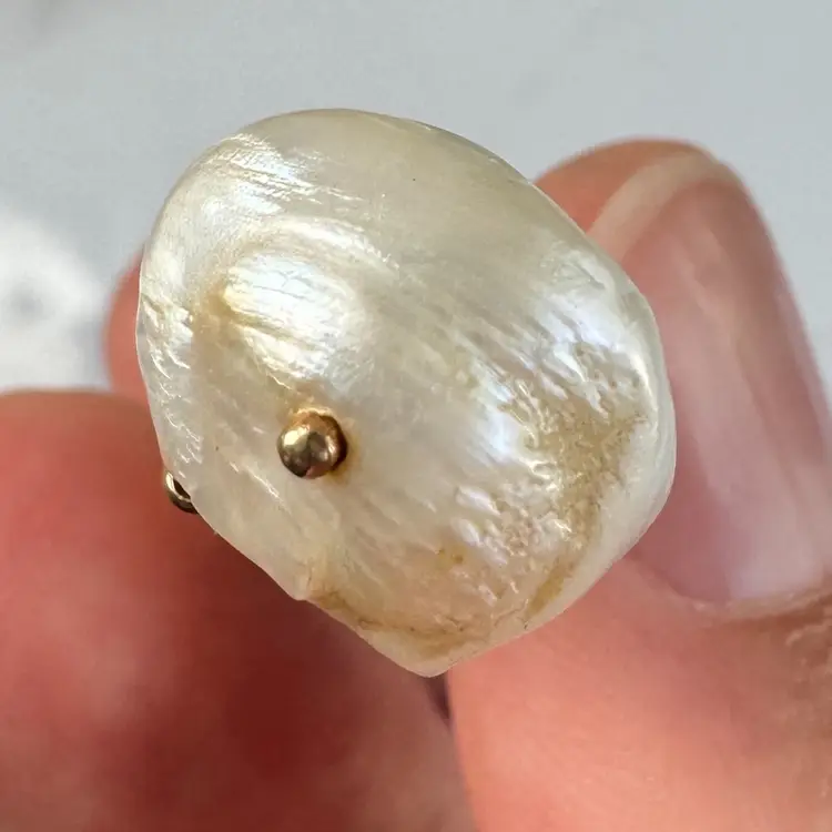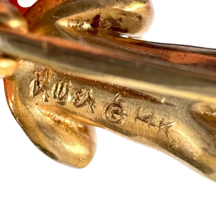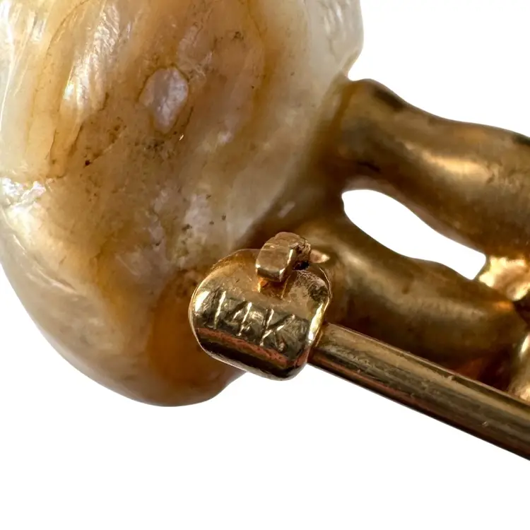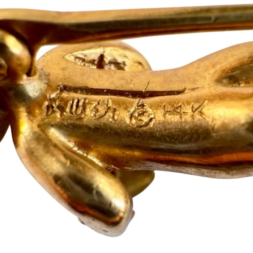 Tested as 14K gold. Good condition with signs of wear due to age. Measures about 1-3/4” tall. Weighs 14g.