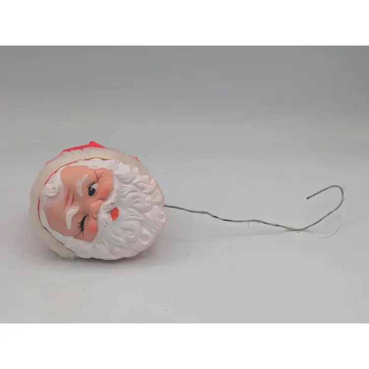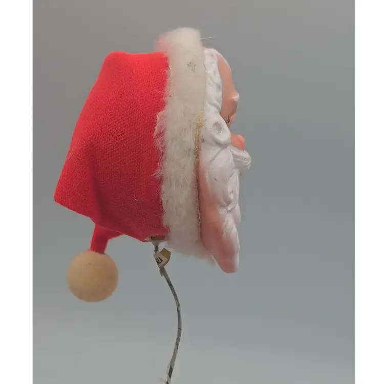 A great 1950s piece of nostalgia. This one has a nice little hat, that is and pretty darn good condition. The colors on the face and fabric are still very vibrant, with little wear. Stick it on your Christmas tree or your next Christmas wreath. It's always fun to have Santa winking at you from unexpected places! CH 27