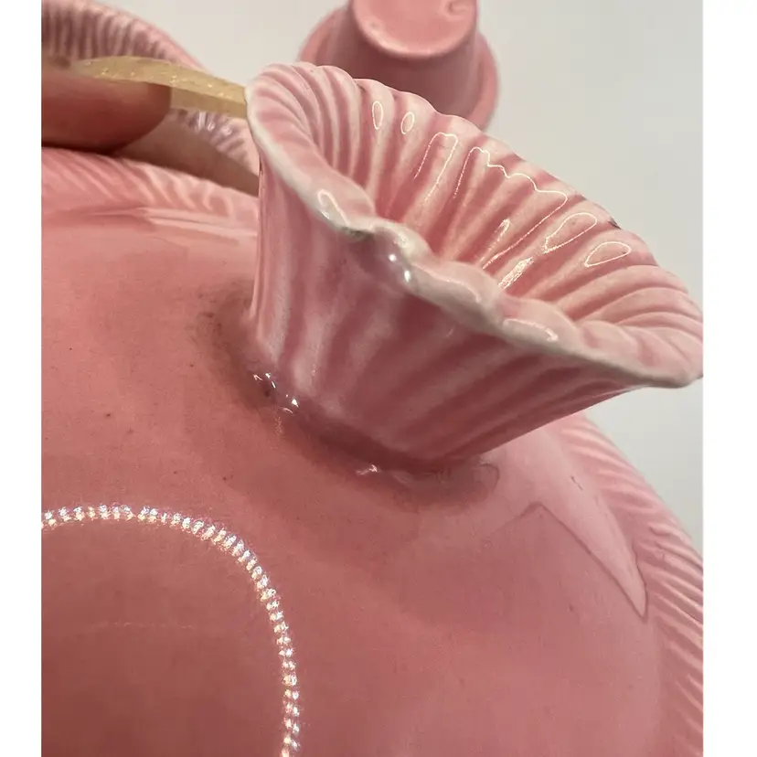 Perfect vintage condition. No cracks, chips, crazing, or any flea bites. Picture shows what appears to be a slight production flaw on the handle of the lid, almost unnoticeable.