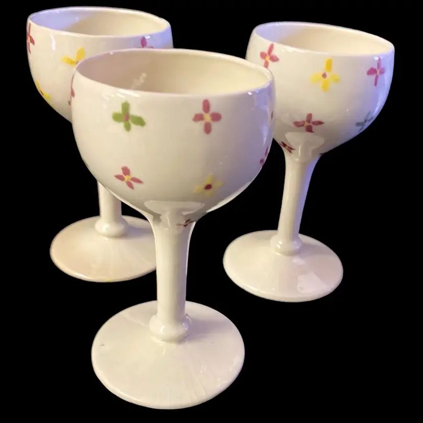 D. NAVA 1958 Studio Pottery Hand Painted Flower Goblets Set of 3