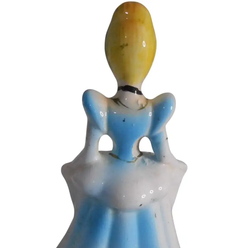 Pre-owned - has been stored so its a little dusty and needs wiped, especially in the folds of her dress, and hair, has a bit of mottling on the side and a few flea bites of the paint on the front