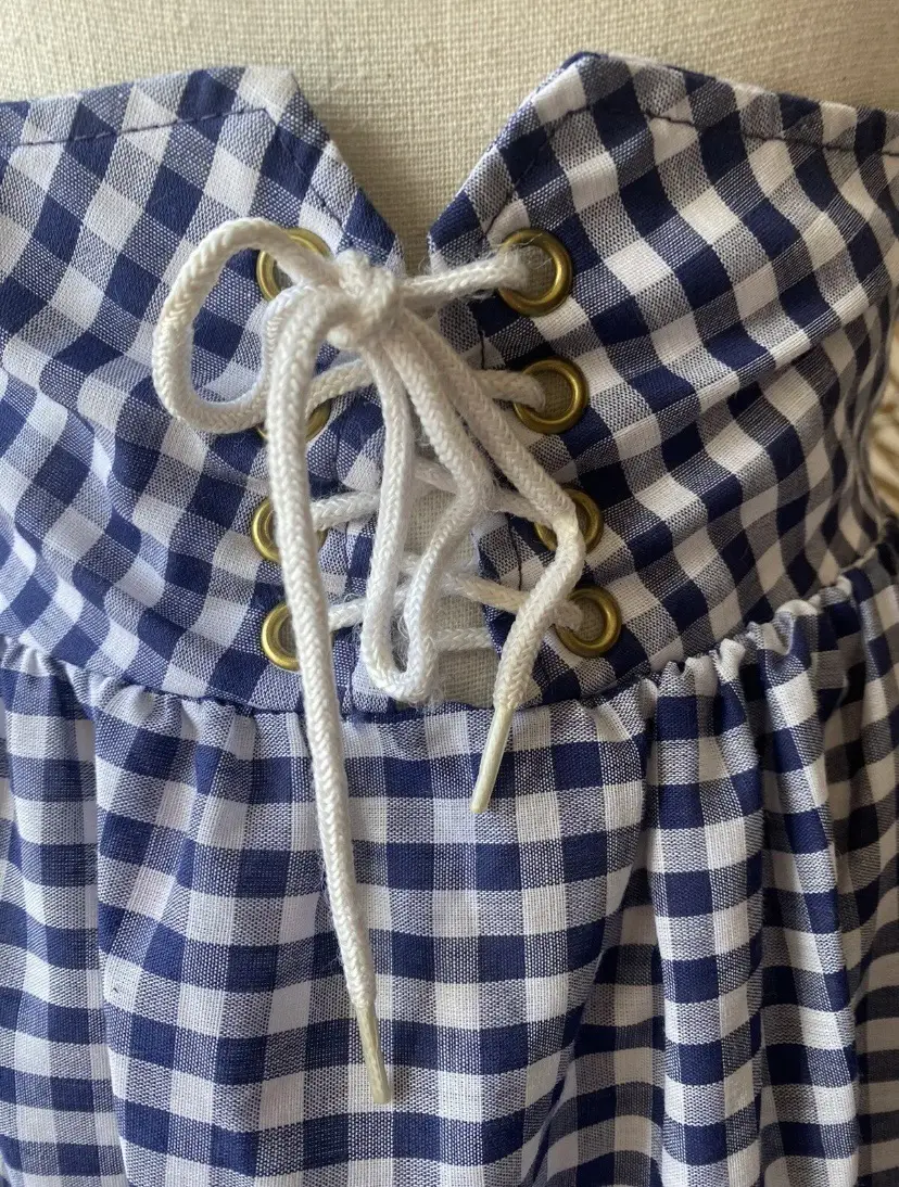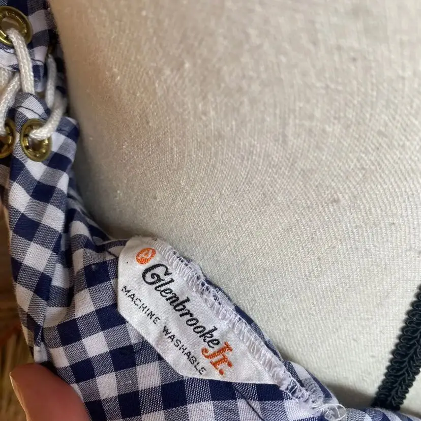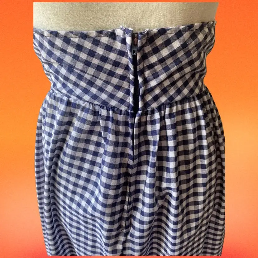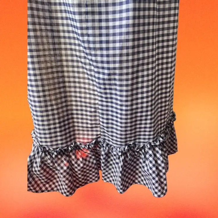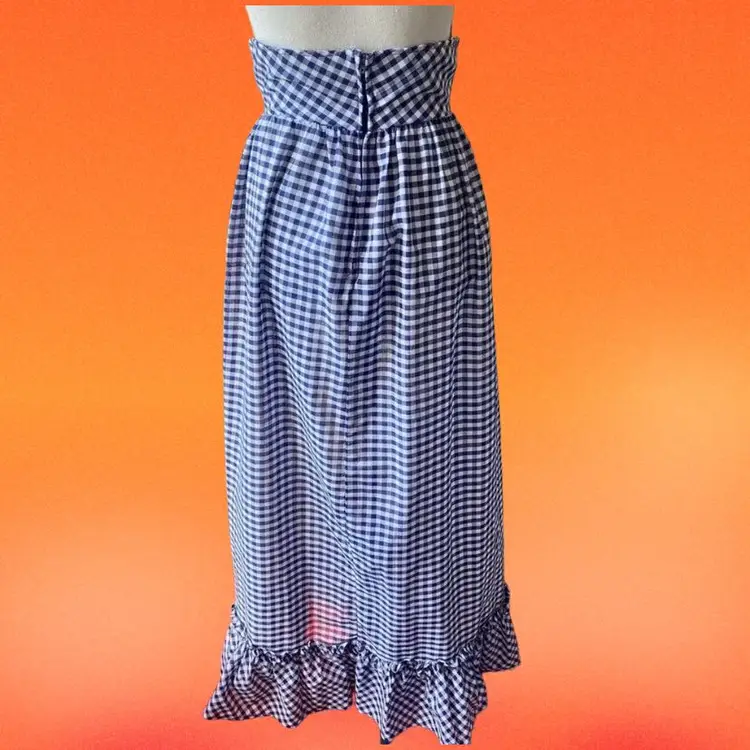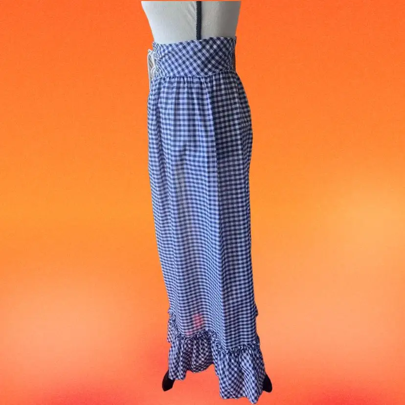 Vintage 1960s 70s Blue And White Gingham Maxi Skirt