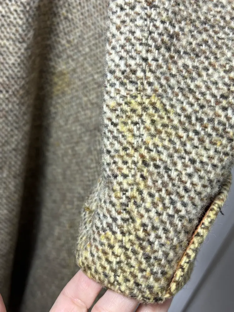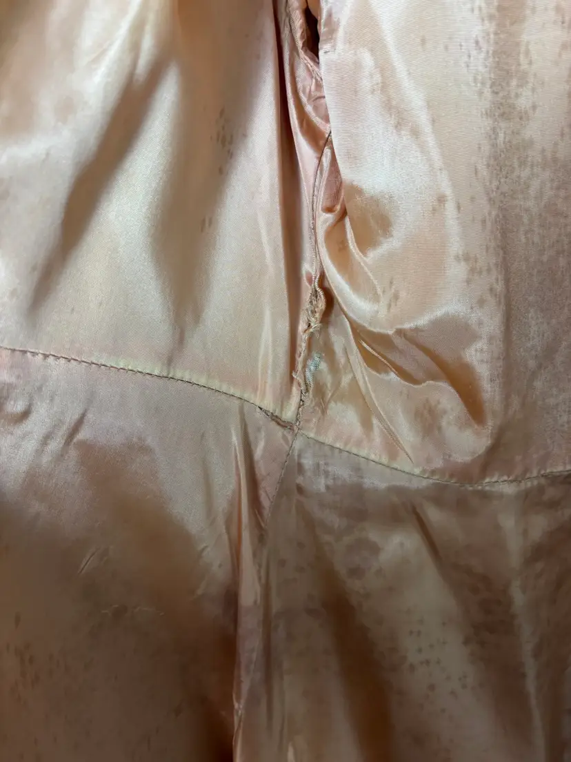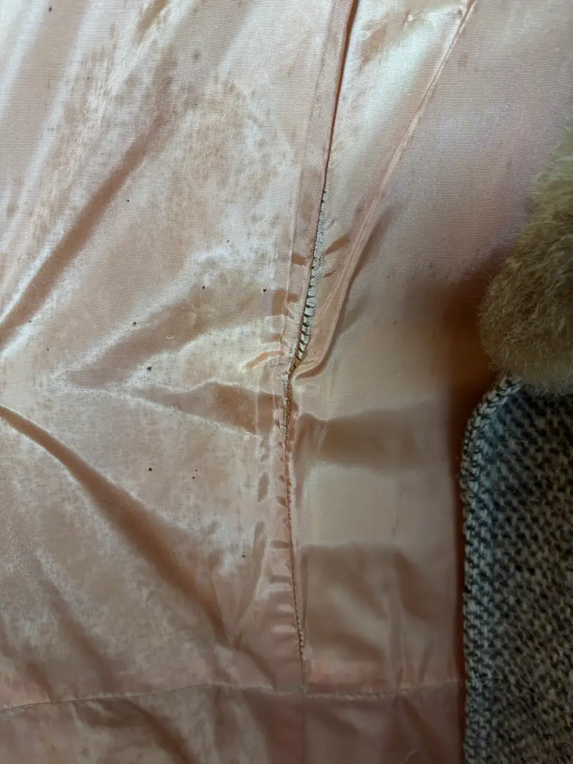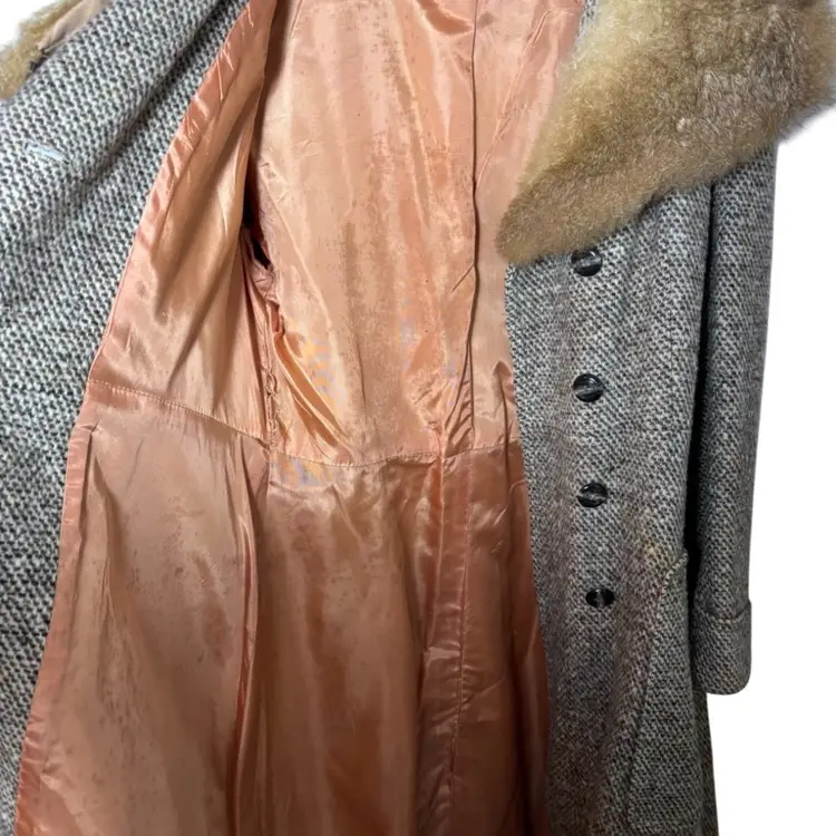 There are several stained areas visible (see pics), and the coat has not been dry cleaned, leaving that decision to the next owner. A timeless winter statement piece with beautiful vintage character — please reference measurements for best fit.