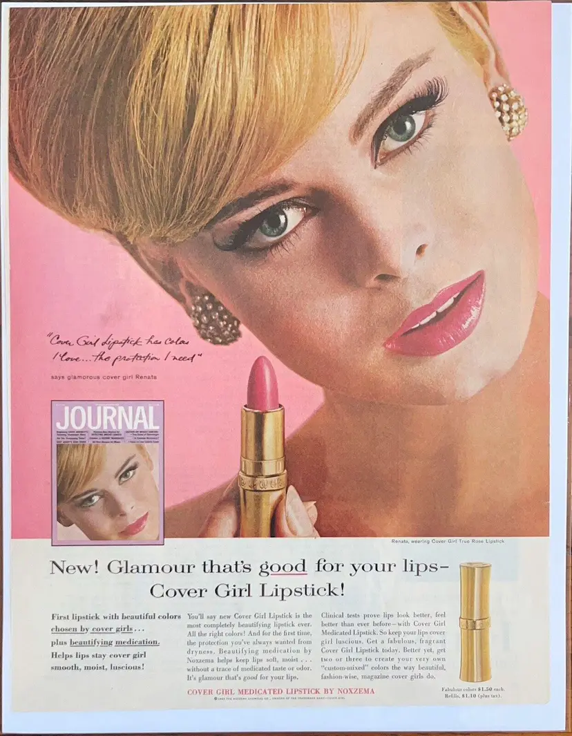 Vintage 1960s Cover Girl Lipstick Magazine Ad Pink Mod Fashion Retro Salon