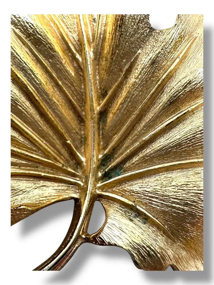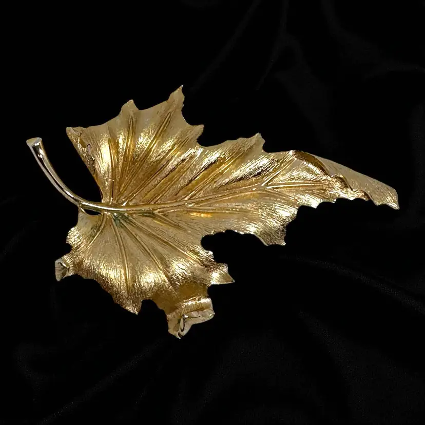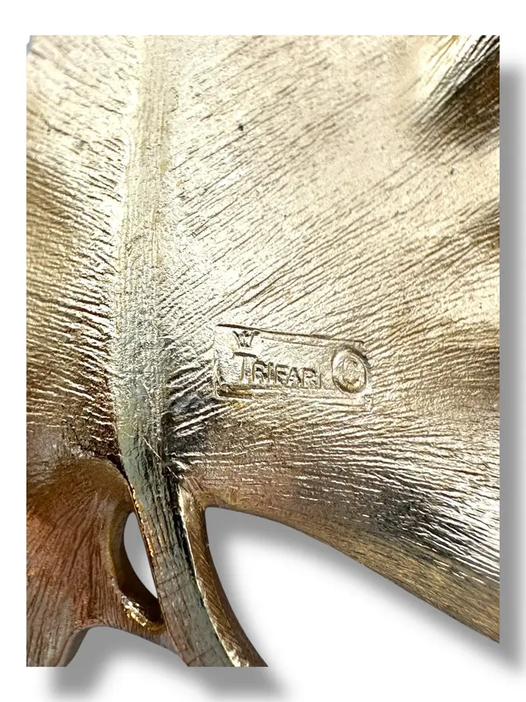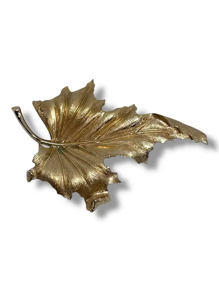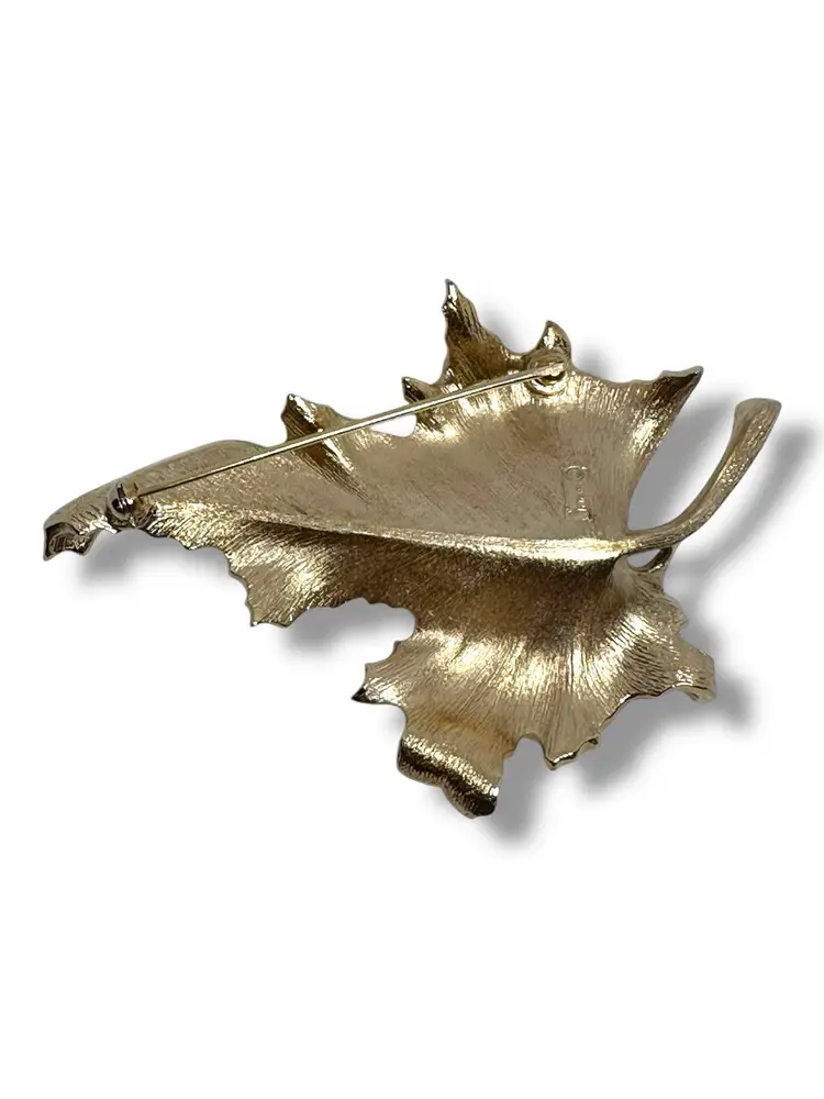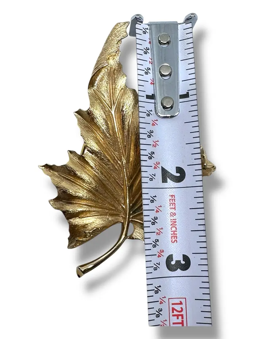 VINTAGE 1960'S CROWN TRIFARI BRUSHED GOLD TONE LEAF PIN/BROOCH! Large! Some Wear, see photos. 3.25 inches