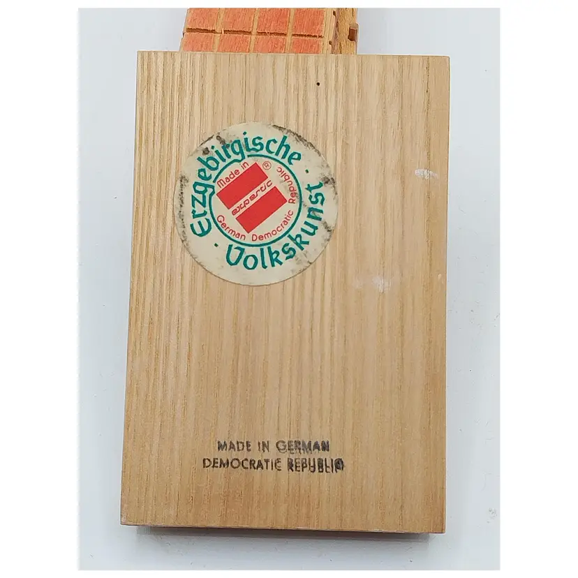 Stamped on the bottom with 'German Democratic Republic'. Also has the Erzgebirge sticker. Approx. 4" high. In great condition!