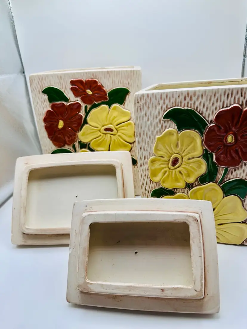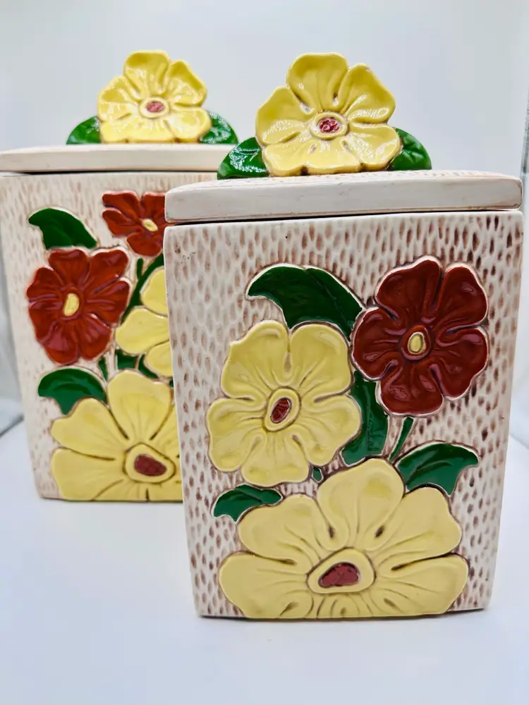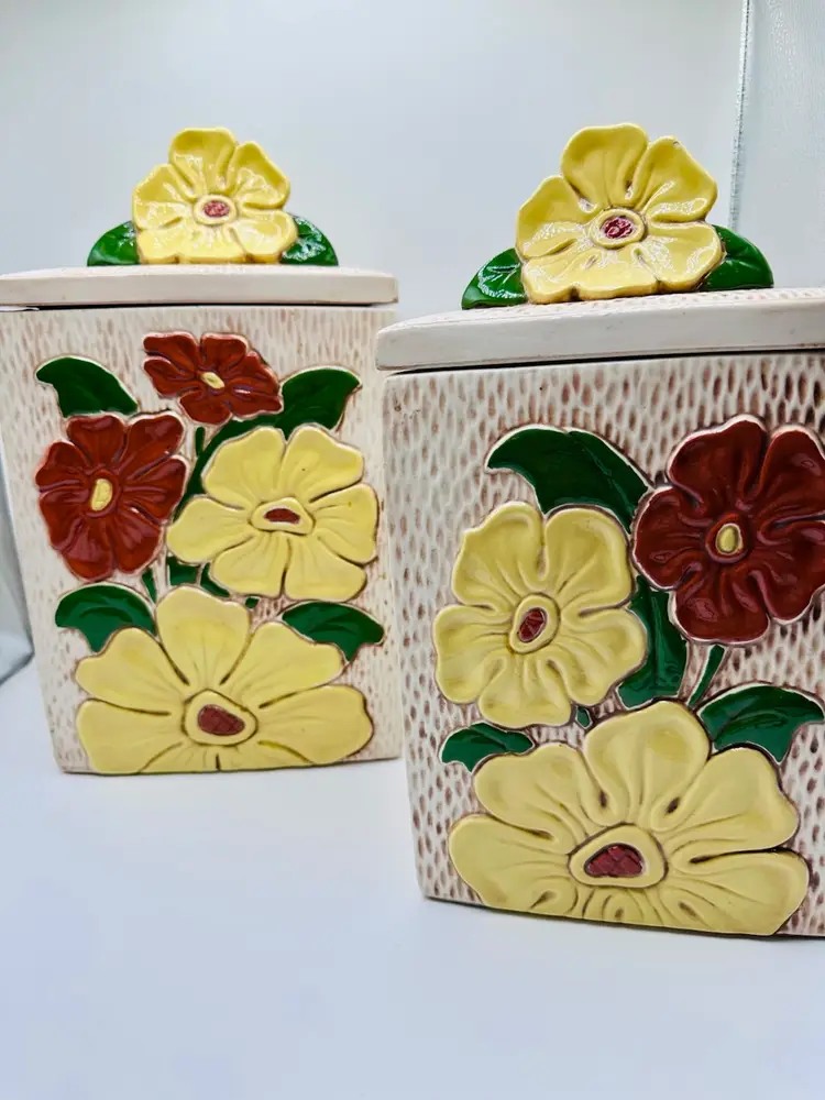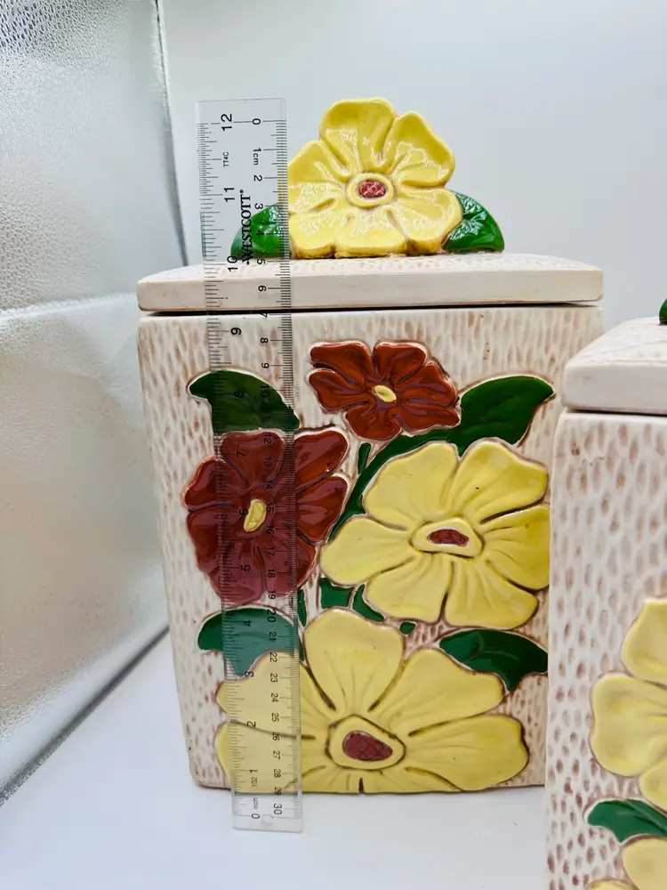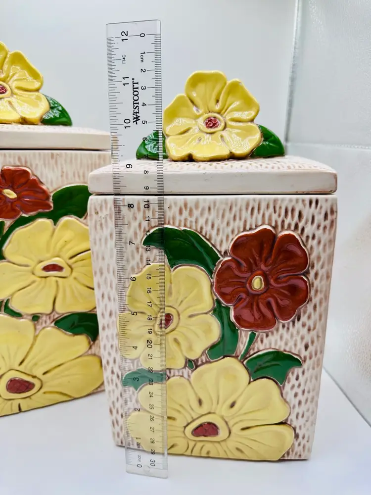 These vintage 1960s Floral Porcelain Canisters are a charming addition to any kitchen or home decor. With a beautiful floral pattern, these canisters add a touch of retro style to your kitchen storage and organization needs. Perfect for storing tea, coffee, or other kitchen essentials, these canisters are both functional and decorative, making them a unique collectible item for those who appreciate vintage kitchen decor.