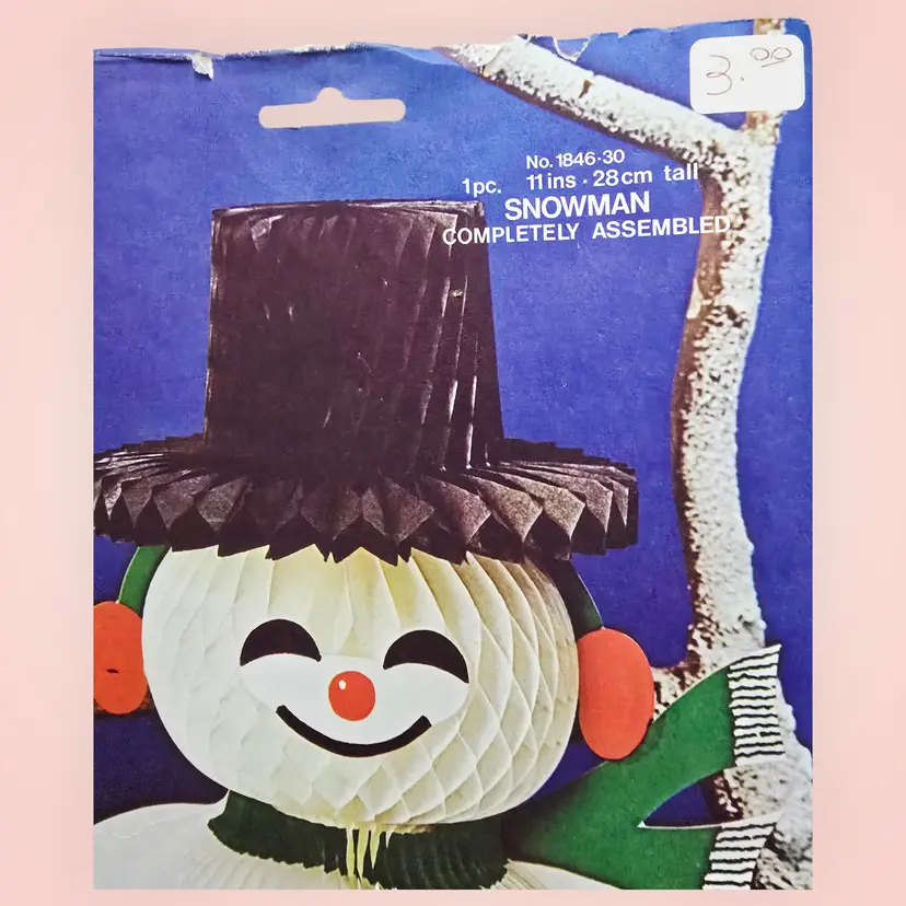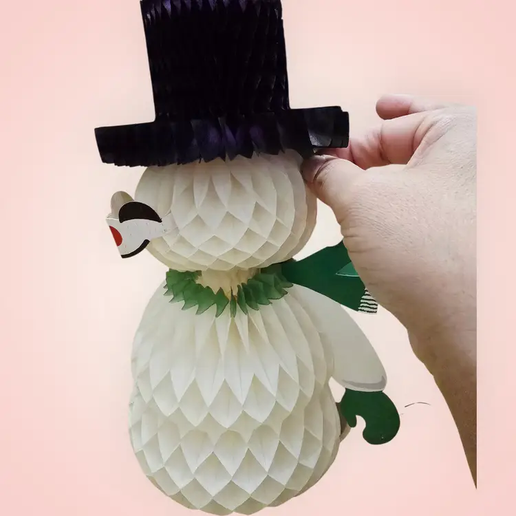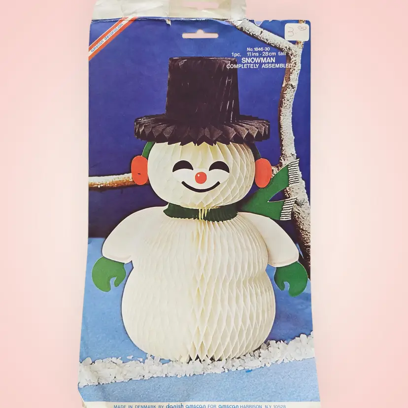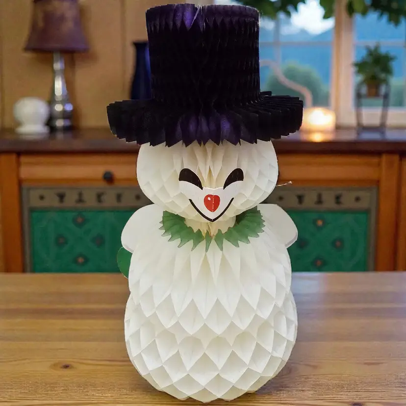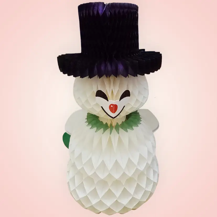 Vintage 1960s Honeycomb Snowman Centerpiece 11" Amscan Denmark