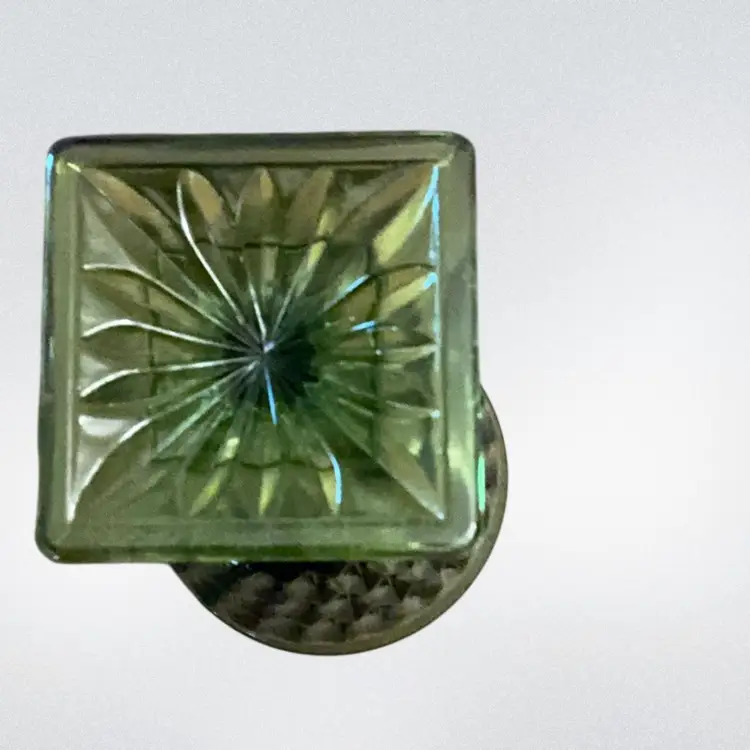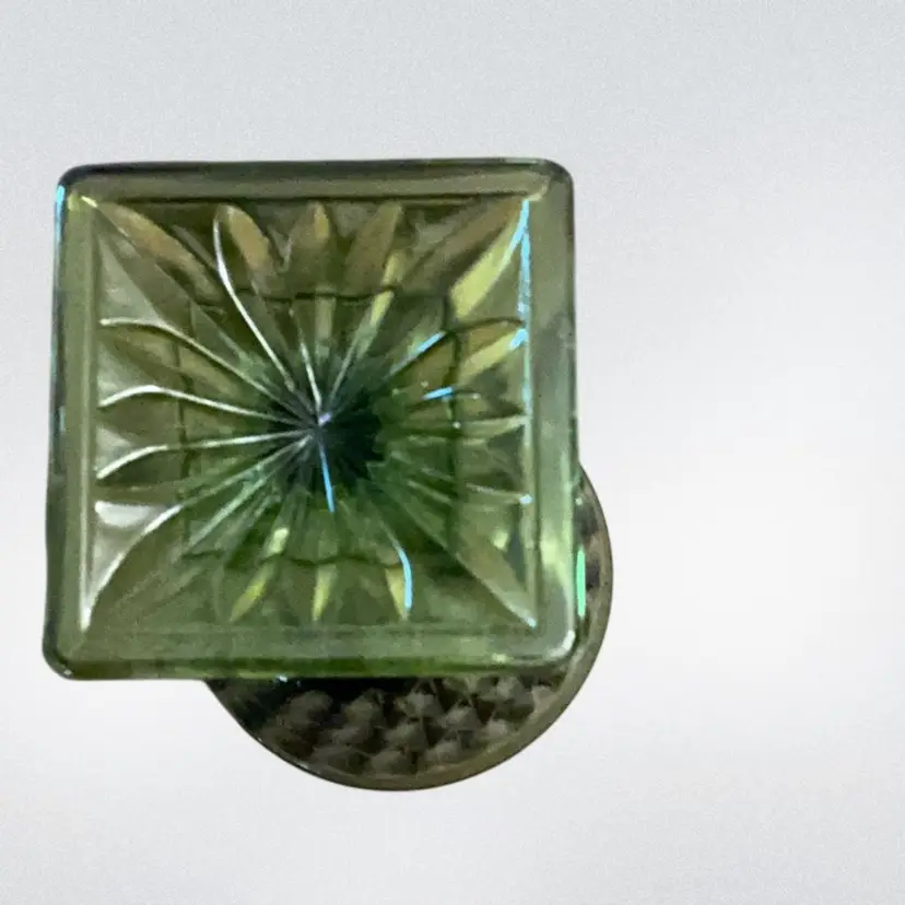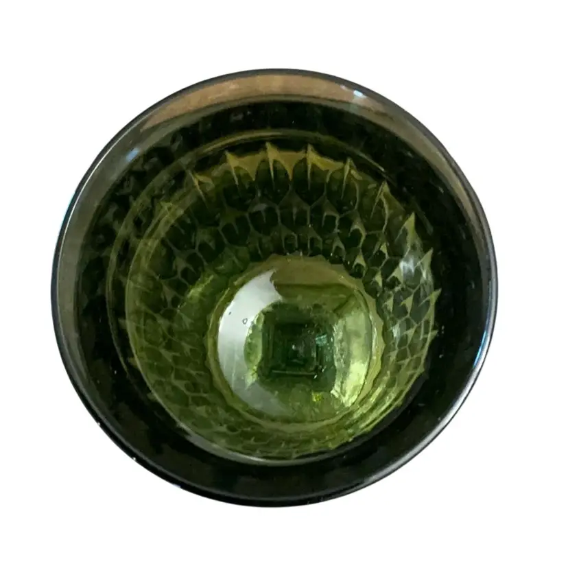 Pretty avocado green colored pressed glass in a diamond pattern with a flared top. Use as a drinking glass or small vase.