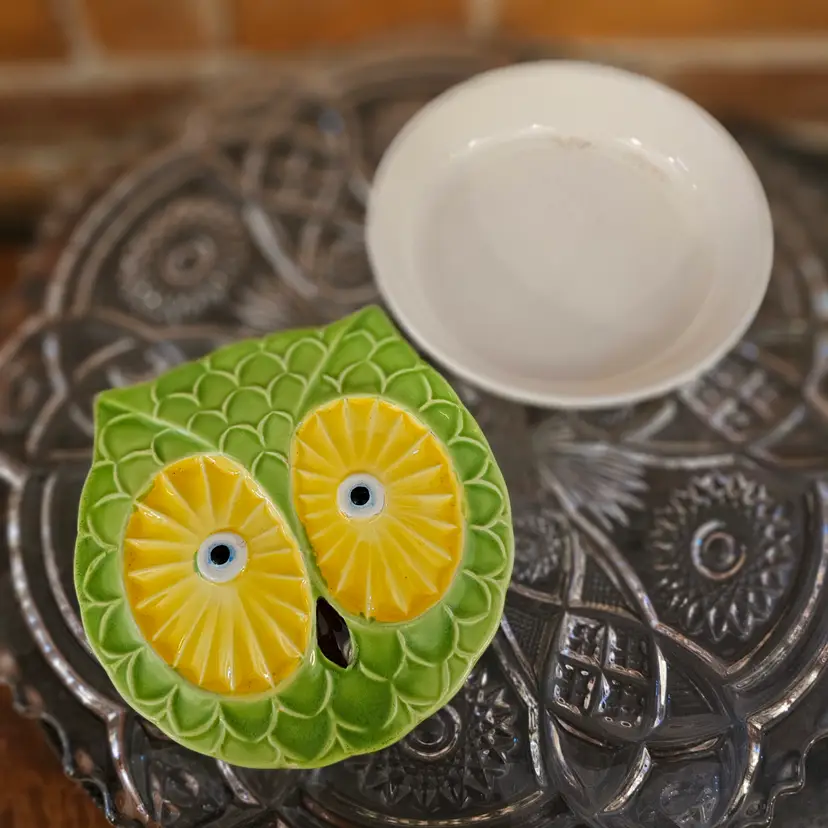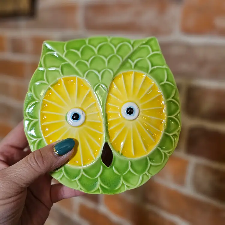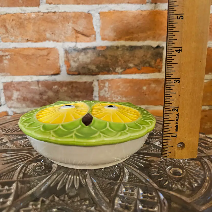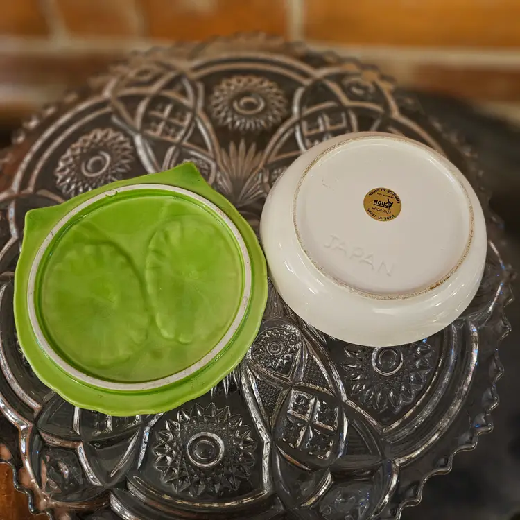 No flaws. 2" tall, 5" wide. Made in Japan.