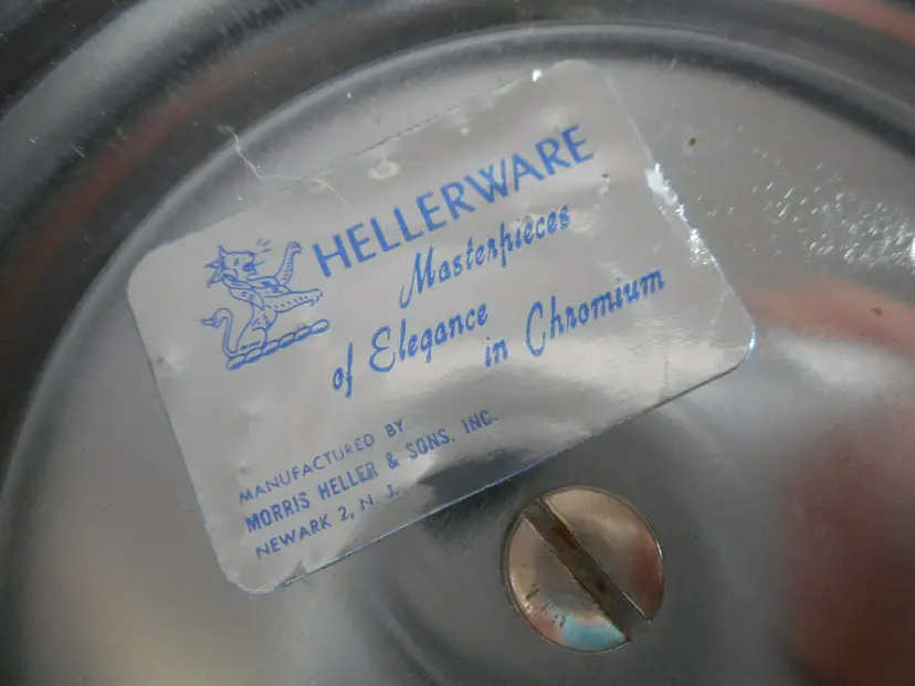 has label on bottom: bottom of tray Hellerware Masterpieces of Elegance in Chromium made in Newark N.J.
