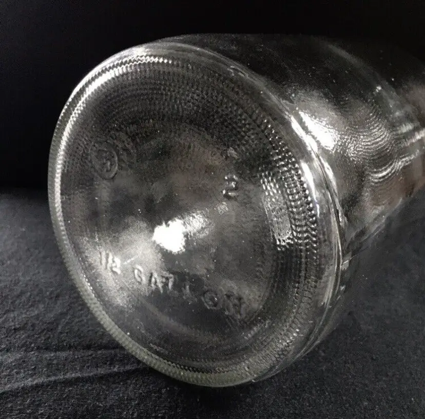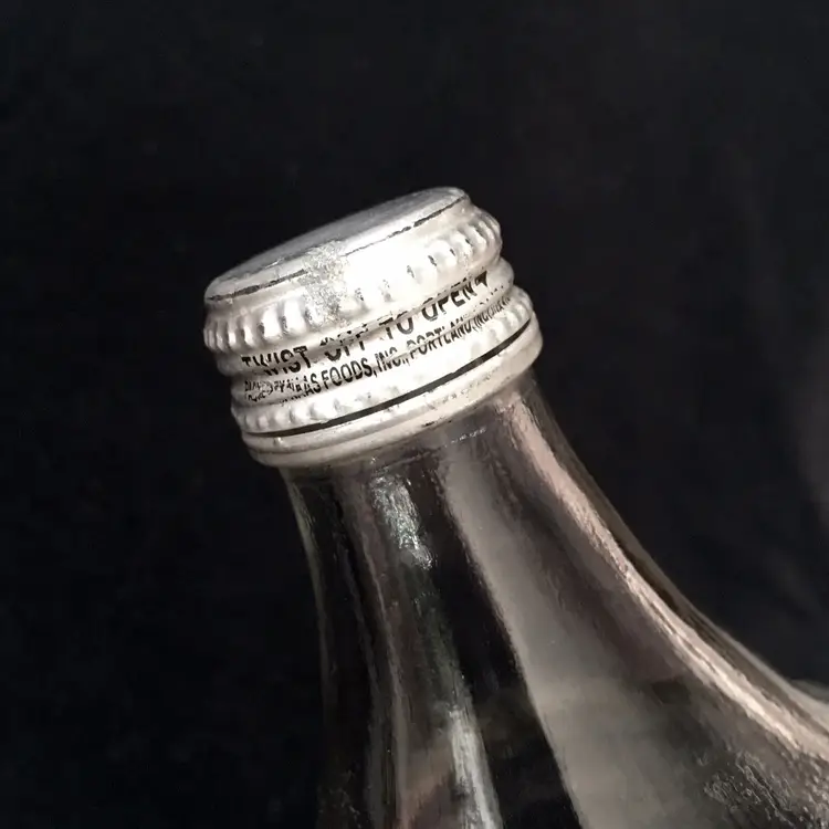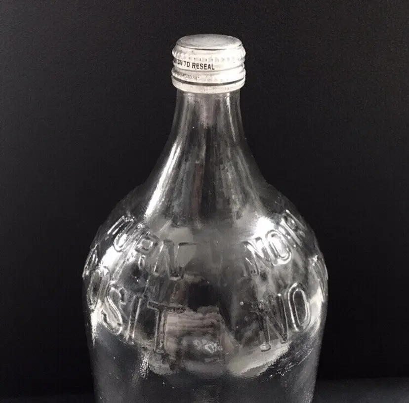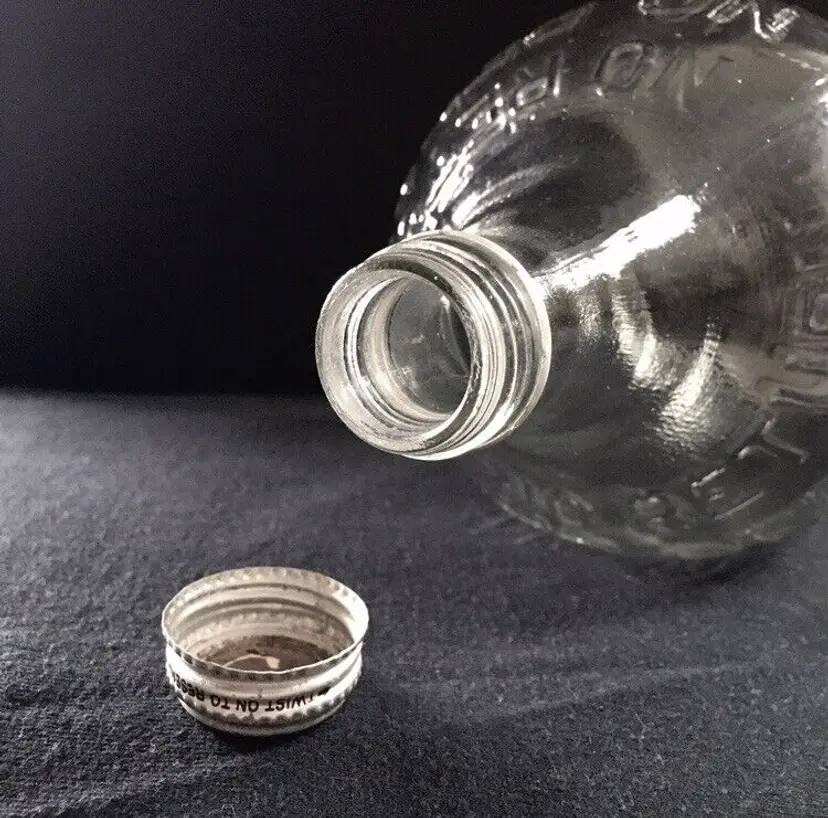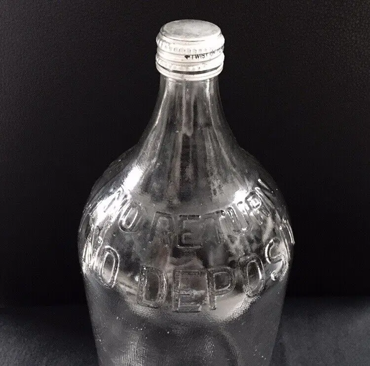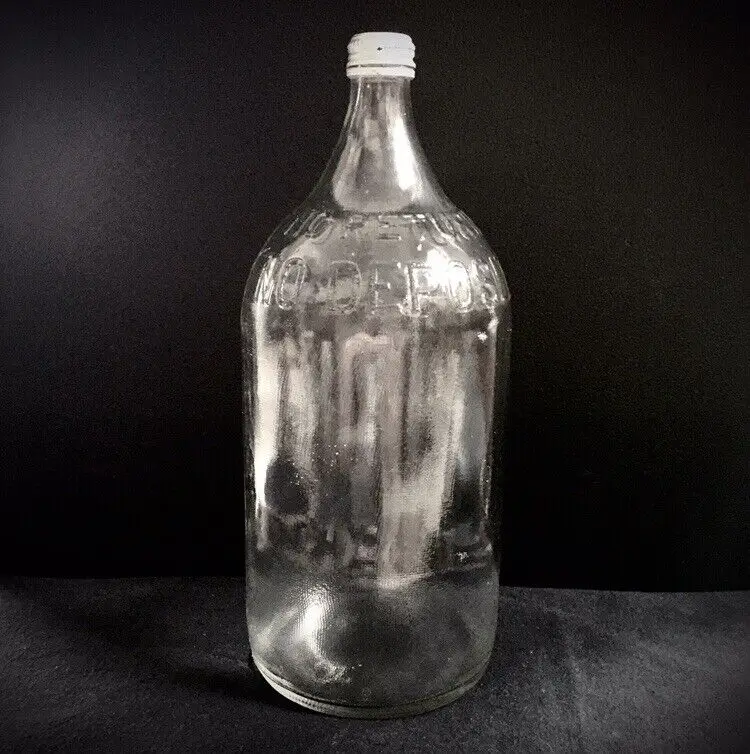 Vintage textured clear glass 1/2 gallon bottle from NAAS FOODS INC. located in Portland, Indiana. It was a tomato processing company in Portland which dates to 1935. They made tomato ketchup, tomato juice, etc. and was the first to pasteurize tomato juice commercially in 1939. This beautifully textured 1/2 gallon glass bottle was for tomato juice. It’s somewhat hard to find and estimate it dates to about the 1960s. Large raised embossed lettering around the top shoulder reads “NO RETURNS NO DEPOSIT”. Metal screw off cap reads “PACKED BY NAAS FOODS INC., PORTLAND, INDIANA”. Bottle is in very good overall condition with no cracks or chips to the glass. Some minor small scratches as shown. Displays Beautifully!! Metal cap screws off as normal. Measures about 11 1/4” high and 4 1/2” diameter. See pics for more details and zoom in for closeups.