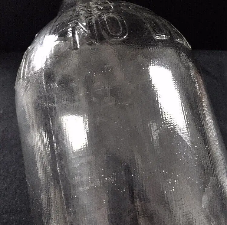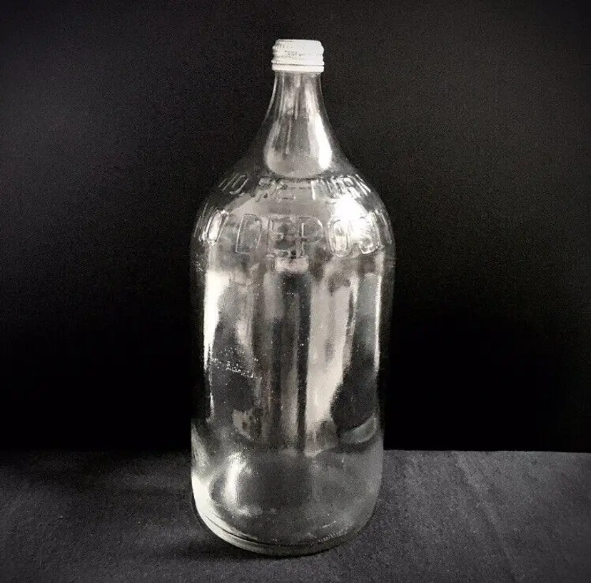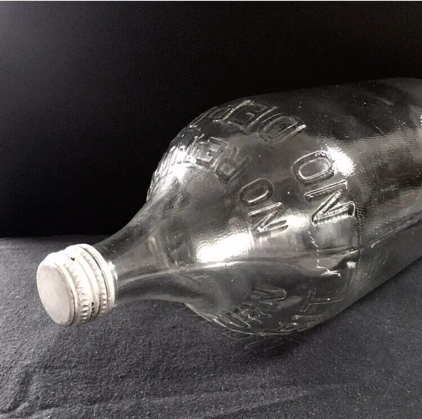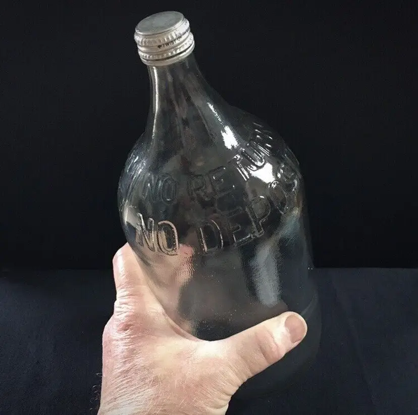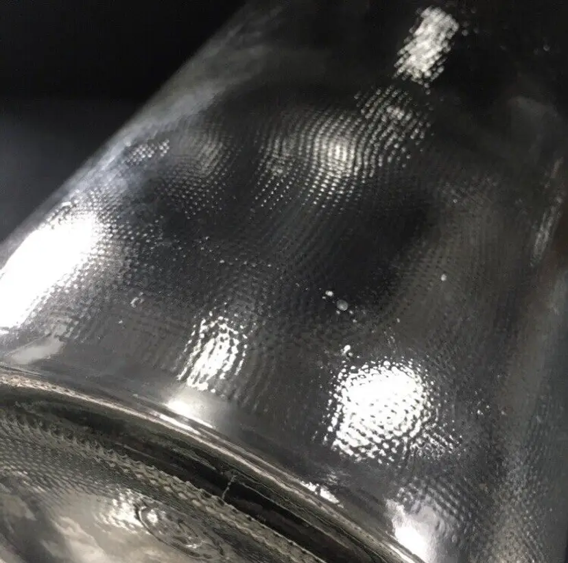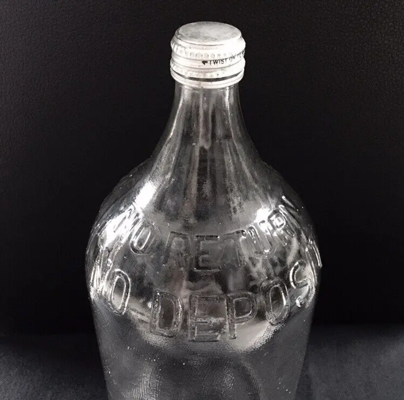 Vintage textured clear glass 1/2 gallon bottle from NAAS FOODS INC. located in Portland, Indiana. It was a tomato processing company in Portland which dates to 1935. They made tomato ketchup, tomato juice, etc. and was the first to pasteurize tomato juice commercially in 1939. This beautifully textured 1/2 gallon glass bottle was for tomato juice. It’s somewhat hard to find and estimate it dates to about the 1960s. Large raised embossed lettering around the top shoulder reads “NO RETURNS NO DEPOSIT”. Metal screw off cap reads “PACKED BY NAAS FOODS INC., PORTLAND, INDIANA”. Bottle is in very good overall condition with no cracks or chips to the glass. Some minor small scratches as shown. Displays Beautifully!! Metal cap screws off as normal. Measures about 11 1/4” high and 4 1/2” diameter. See pics for more details and zoom in for closeups.
