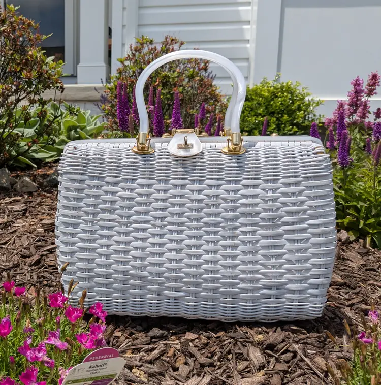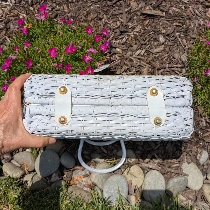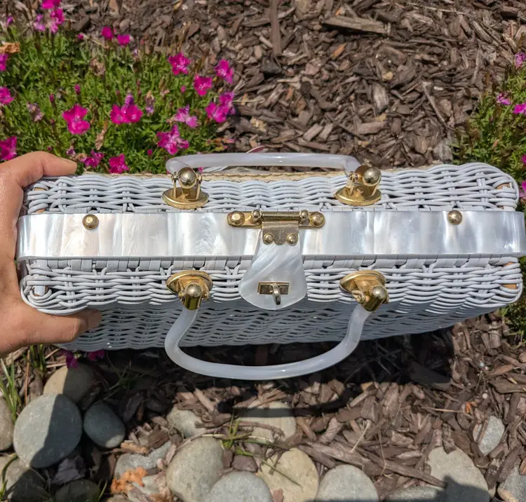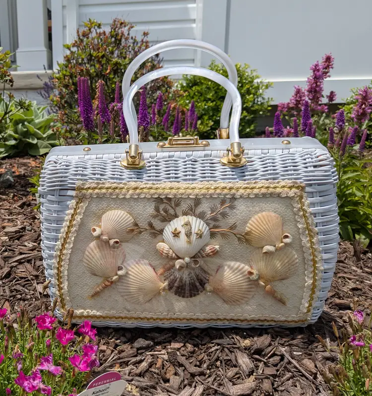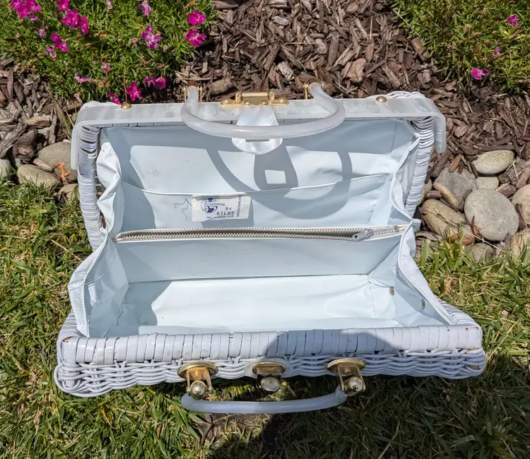 The purse has two sections with a center zippered section. 12" x 8" x 3.5". Original tag Princess Charming by Atlas, Hollywood - Fla, Made in Hong Kong