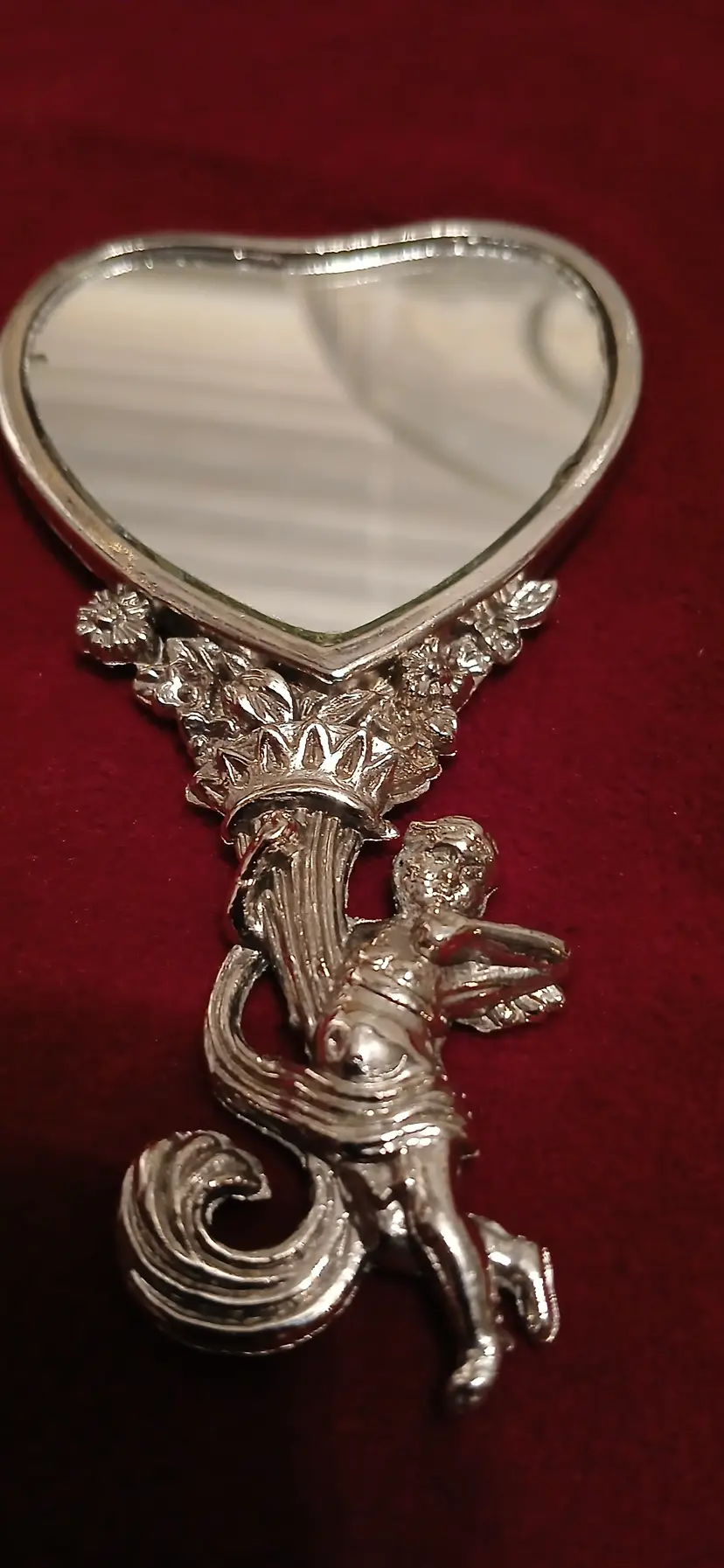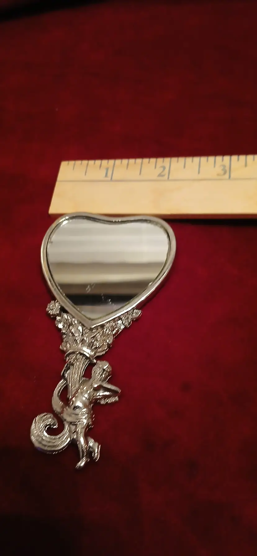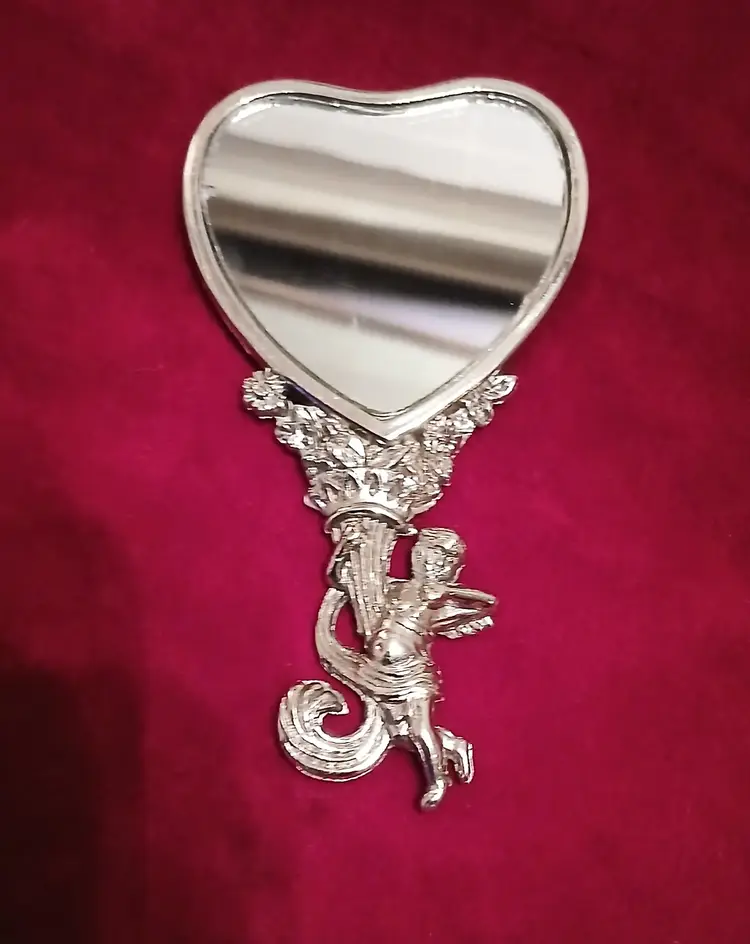 Just in time for Valentines day! Dainty cherub heart mirror! My sources say 1960s but it could be earlier. In excellent condition no issues. Please check out my other listings as I will combine shipping!