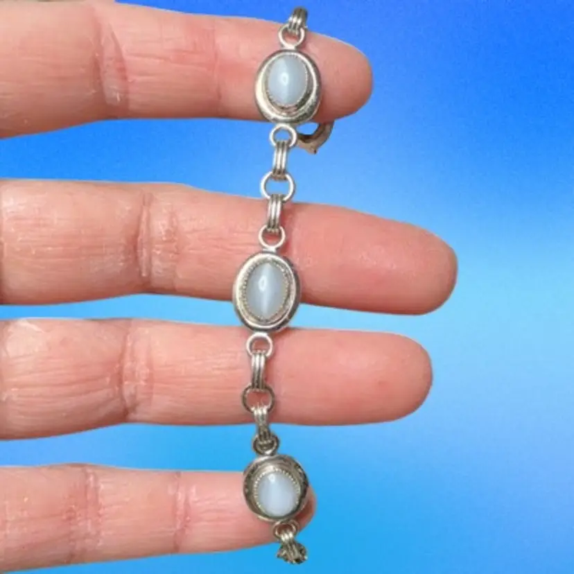 Vintage 1960’s White Stone SilverTone Bracelet 7.5” Safety Chain