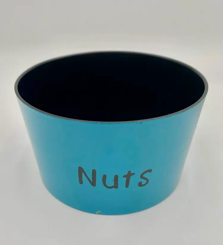 Yellow Bowl (Snacks) - 5.5 inches wide, 3.1 inches high Orange Bowl (Pretzels) - 4.9 inches wide, 2.8 inches high Blue Bowl (Nuts) - 4.4 inches wide, 2.5 inches high Green Lid - 5.6 inches wide,1.6 inches high