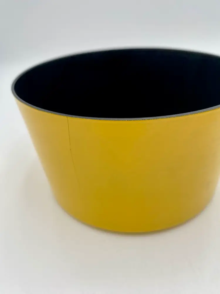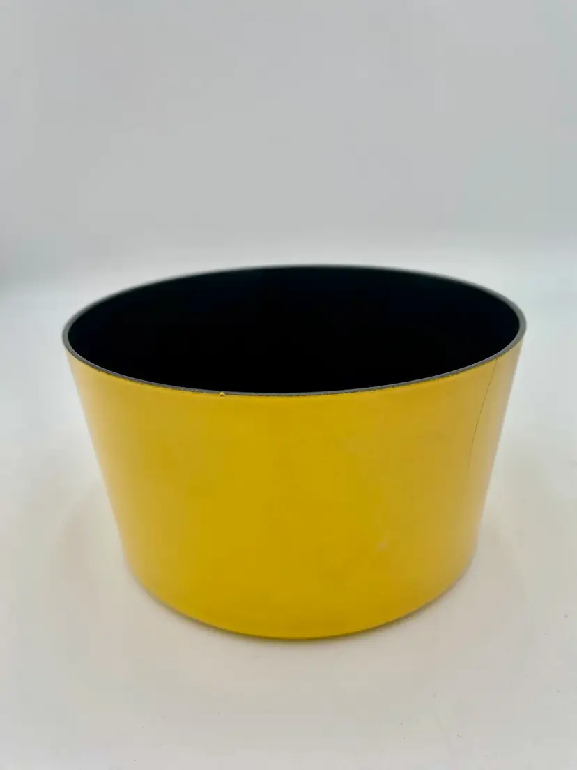 The set is in very good used condition. There is a partial crack on the back side of the yellow bowl (please see pictures). Items show wear consistent with use.