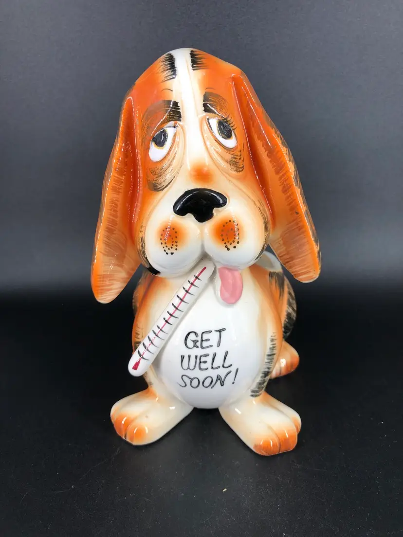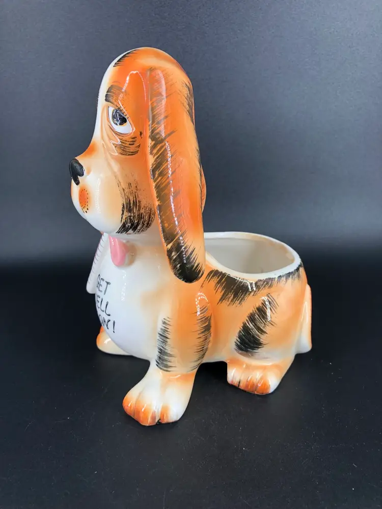 Vintage 1966 Get Well Soon Hound Dog Flower Pot Planter Rubens #402