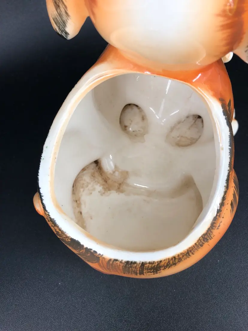 In amazing condition Has the original sticker on the bottom Absolutely adorable little pup planter Dirty on the inside but could easily be cleaned out