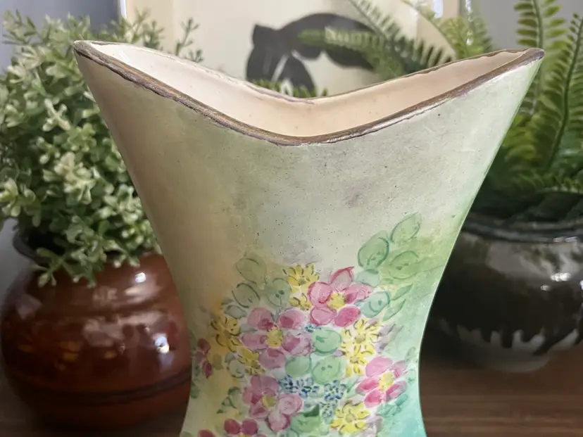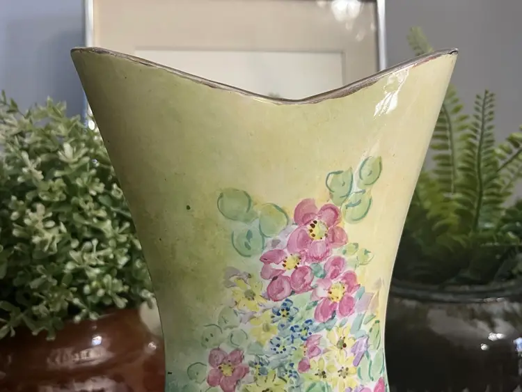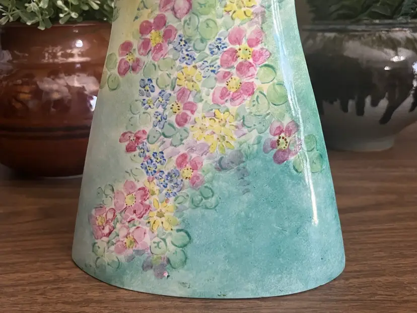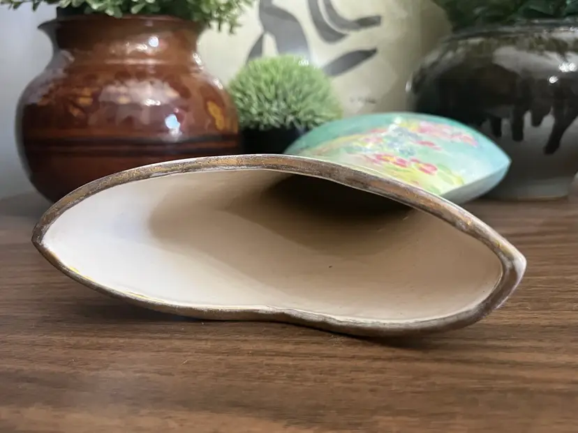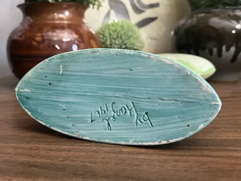 No chips or cracks. Some wear to the gold detailing on the top rim as shown. Signed by Hazel in 1967. Please message me with any questions.