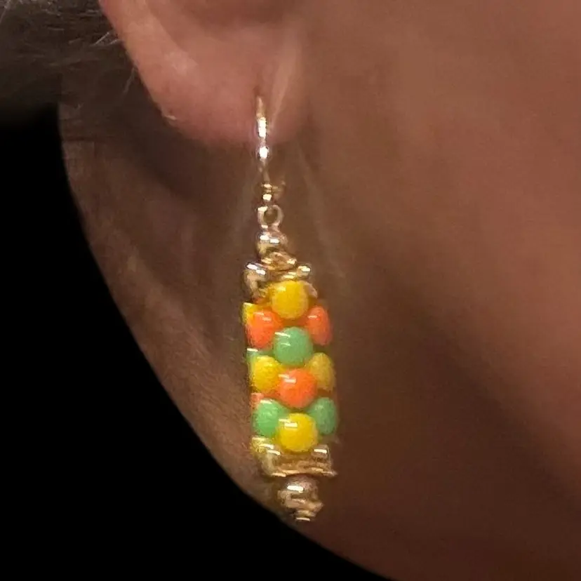 Sarah Coventry Carousel Citrus Shades Set Lariat Earrings VTG 1967 MCM