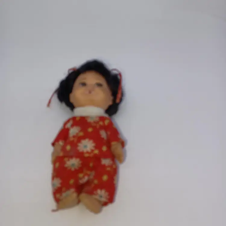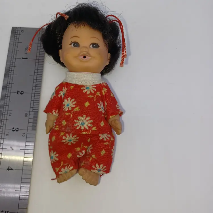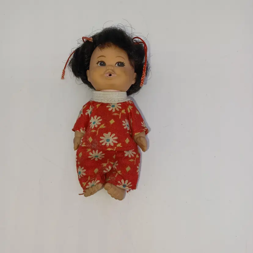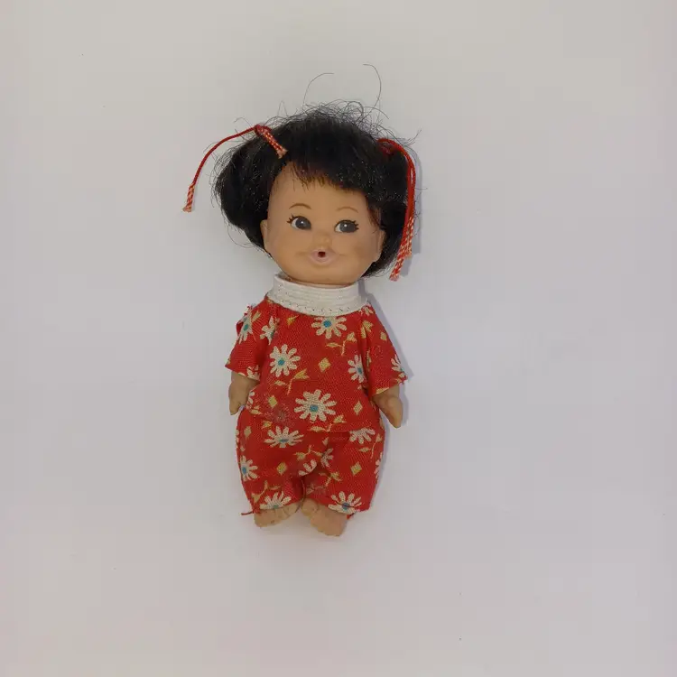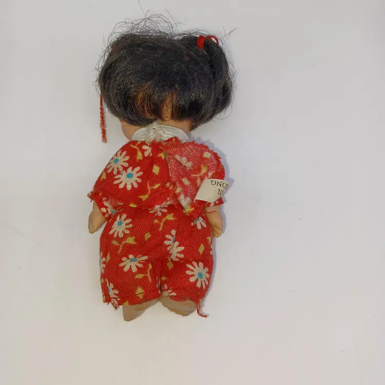 This incredible miniature doll is an Asian girl with two little pigtails tied with red bows a little flowered top and little pants Mearsures 3 1/2 inches tall made by the U. D. Company dated 1968 In great vintage condition please see pictures all items from a smoke-free home with pets this item will be mailed and a padded mailer to help you save on shipping