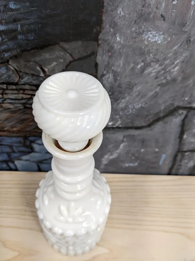 Vintage 1969 Jim Beam Bonded White Swirl Milk Glass Alcohol Decanter Bottle 3D
