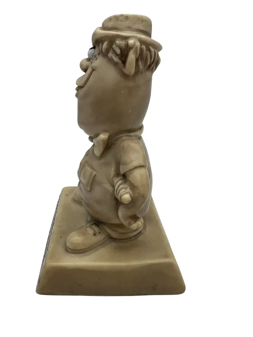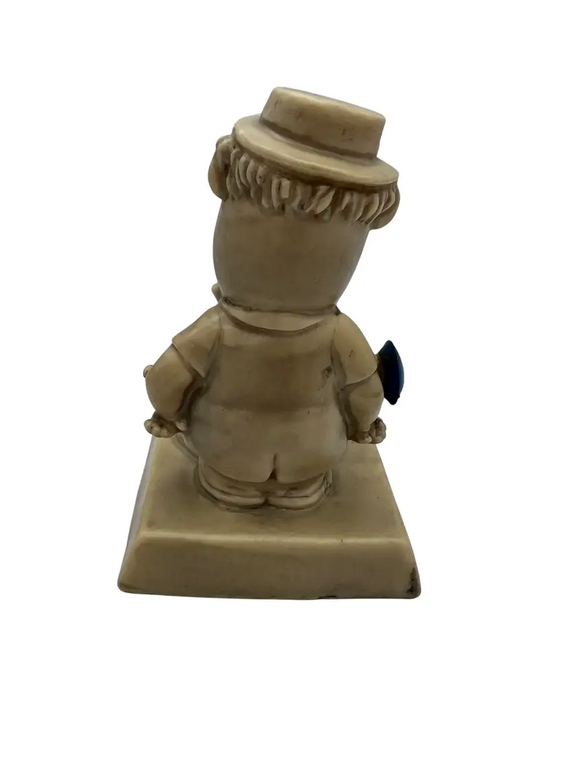 Charming vintage Russ Wallace Berrie & Co. novelty figurine, circa 1969, inscribed “Work Hard, Be Faithful … You’ll Get Your Just Reward.” Measures approximately 4½" tall. Made of molded resin. A fine piece for collectors of 1970s humorous quote figurines or Russ Berrie memorabilia.