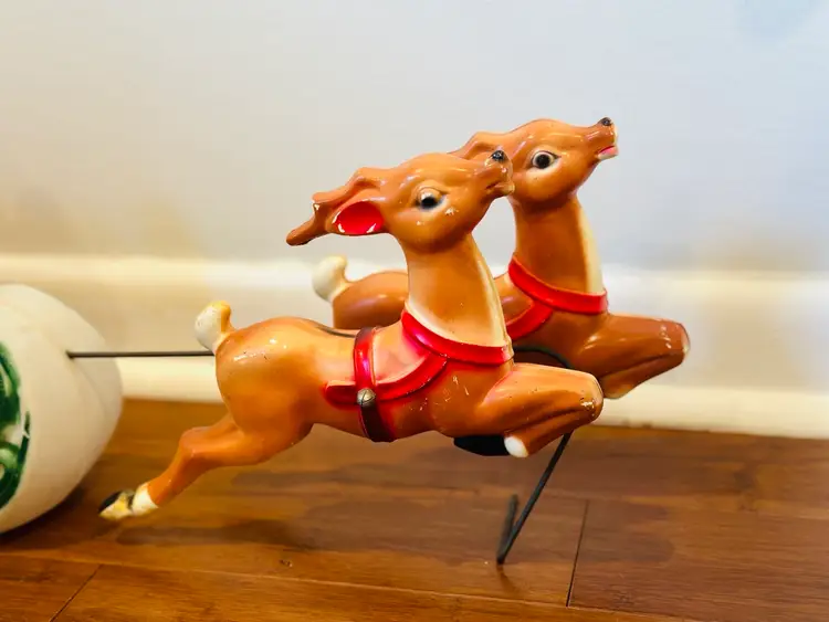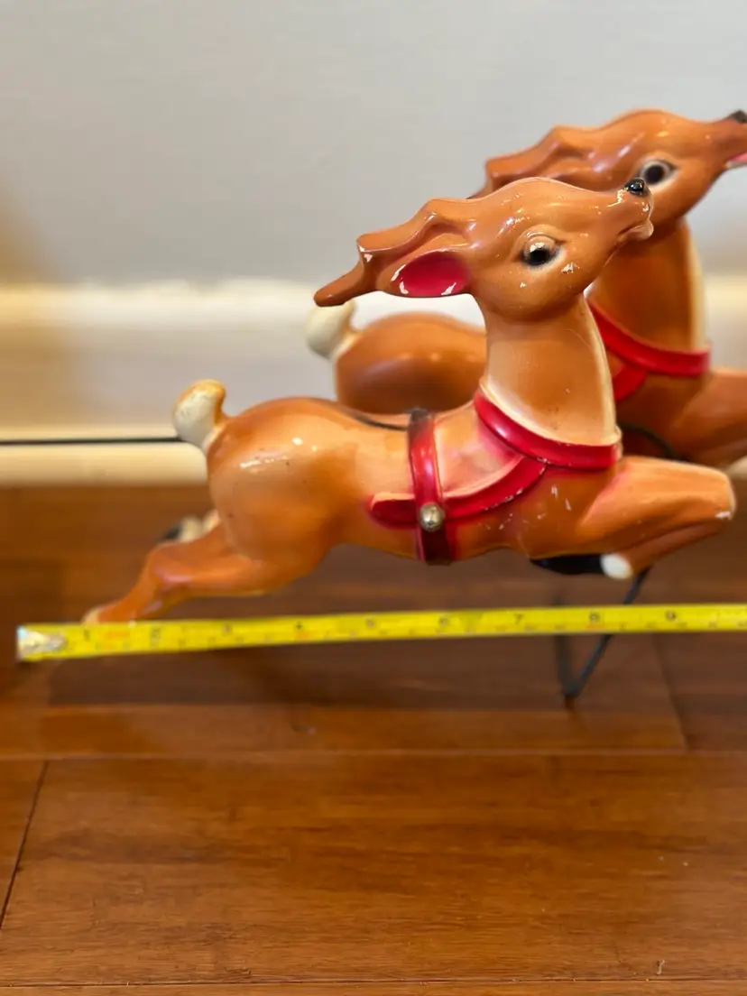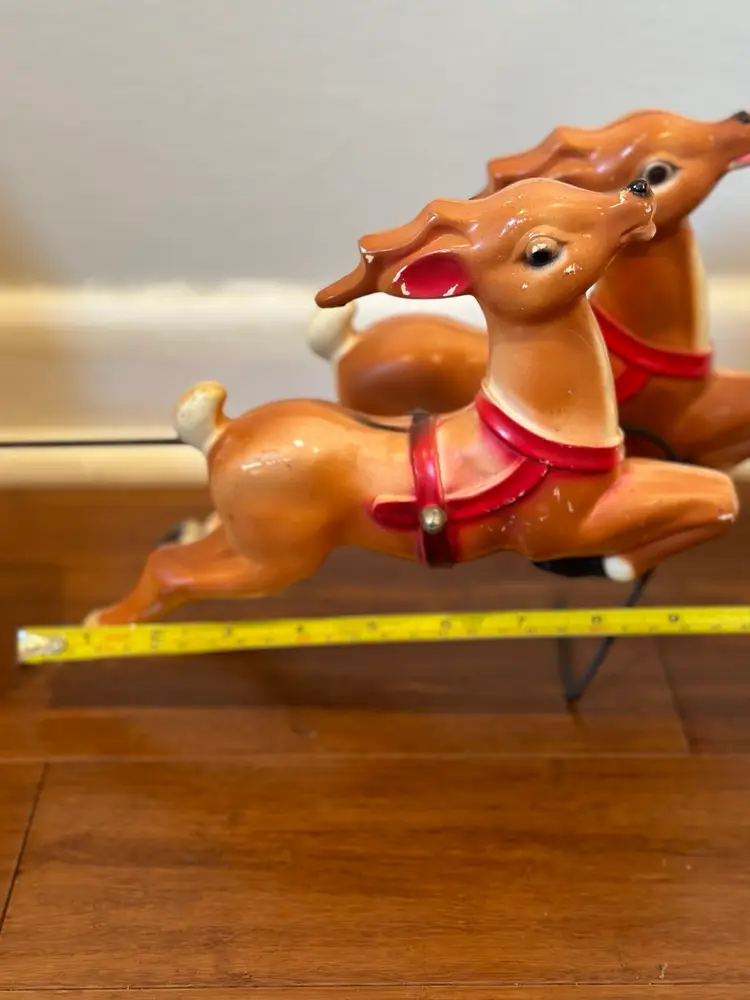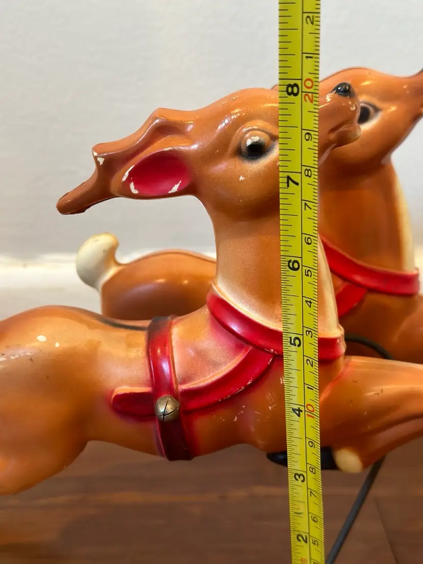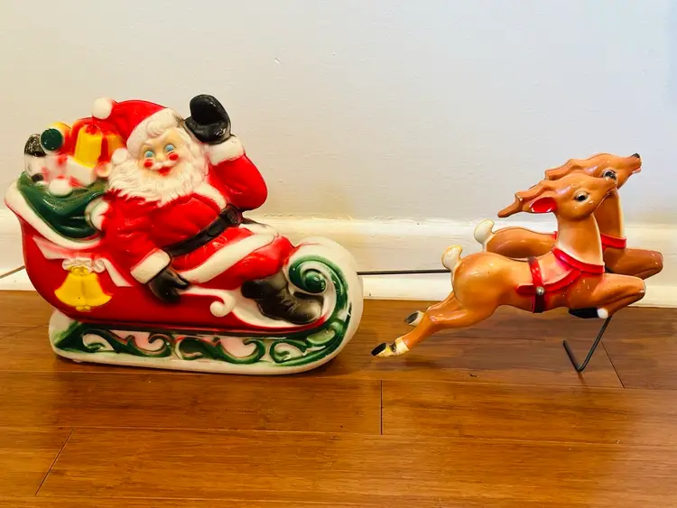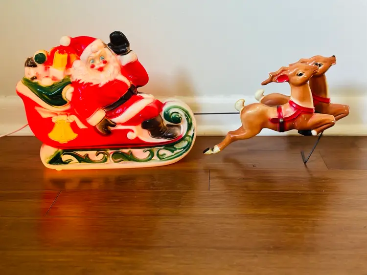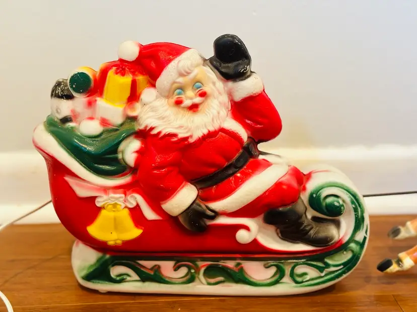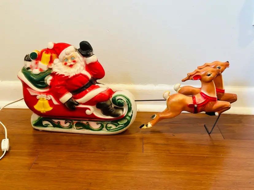 Vintage 1970 Empire Tabletop Santa Sleigh & 2 Reindeer Lighted Blow Mold & Light