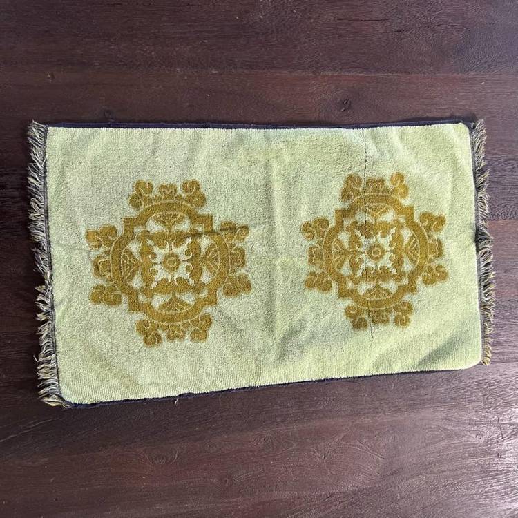 Towel measures 26 x 15 inches. Small line across top on one side as shown in picture. In good condition