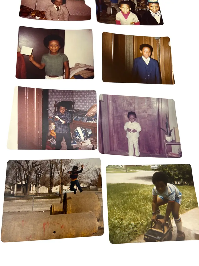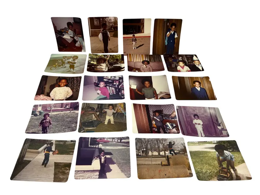 A nostalgic collection of twenty snapshots of African American children from the late 1970s, showcasing everyday life and childhood memories. Each photograph measures 4 3/8" x 3 1/2". Two of the photos have the date 4/15/79 on the back. Not sure if all the photos are from that exact timeframe but all are most likely from the late 1970s.