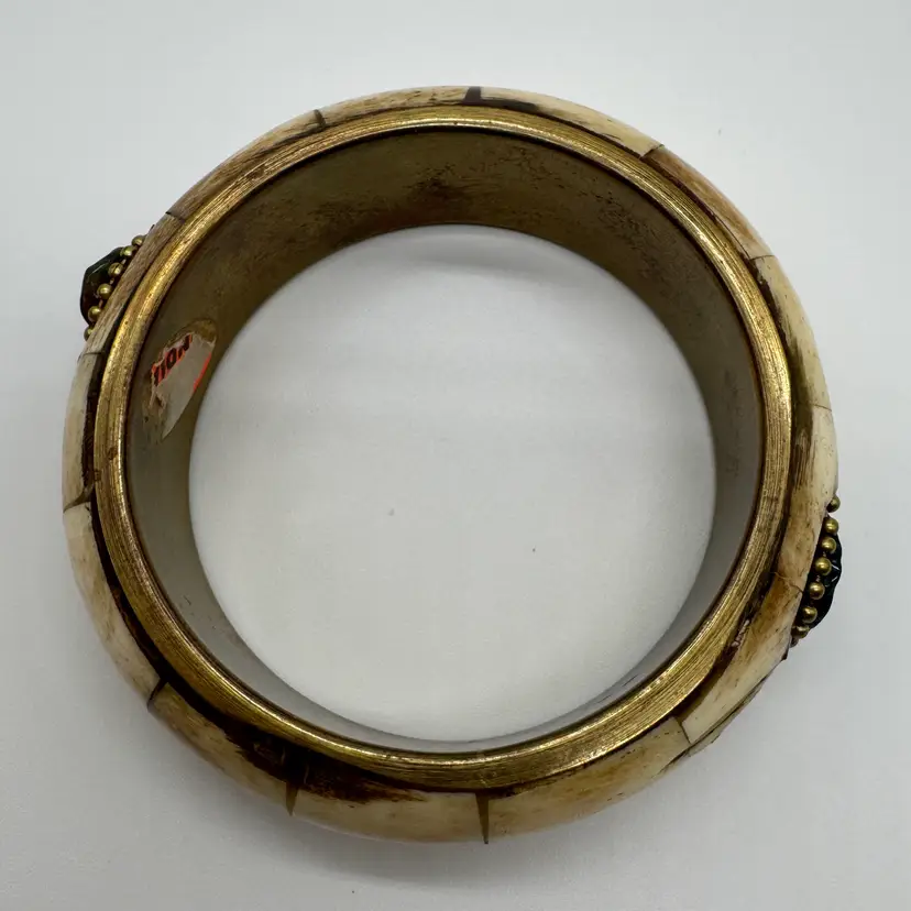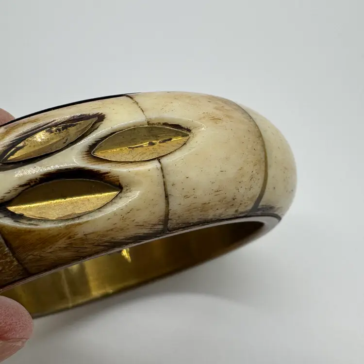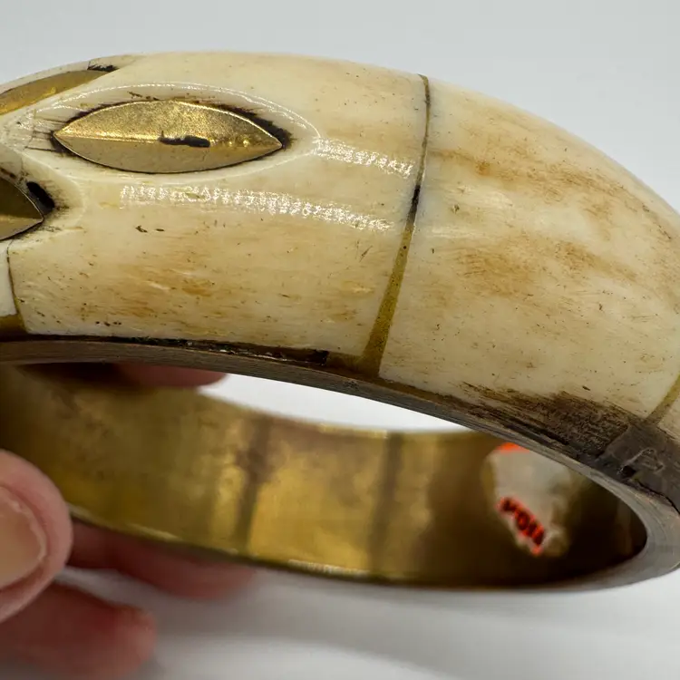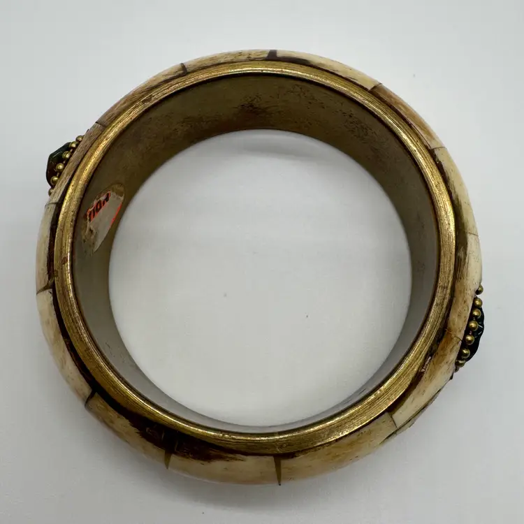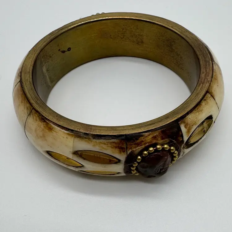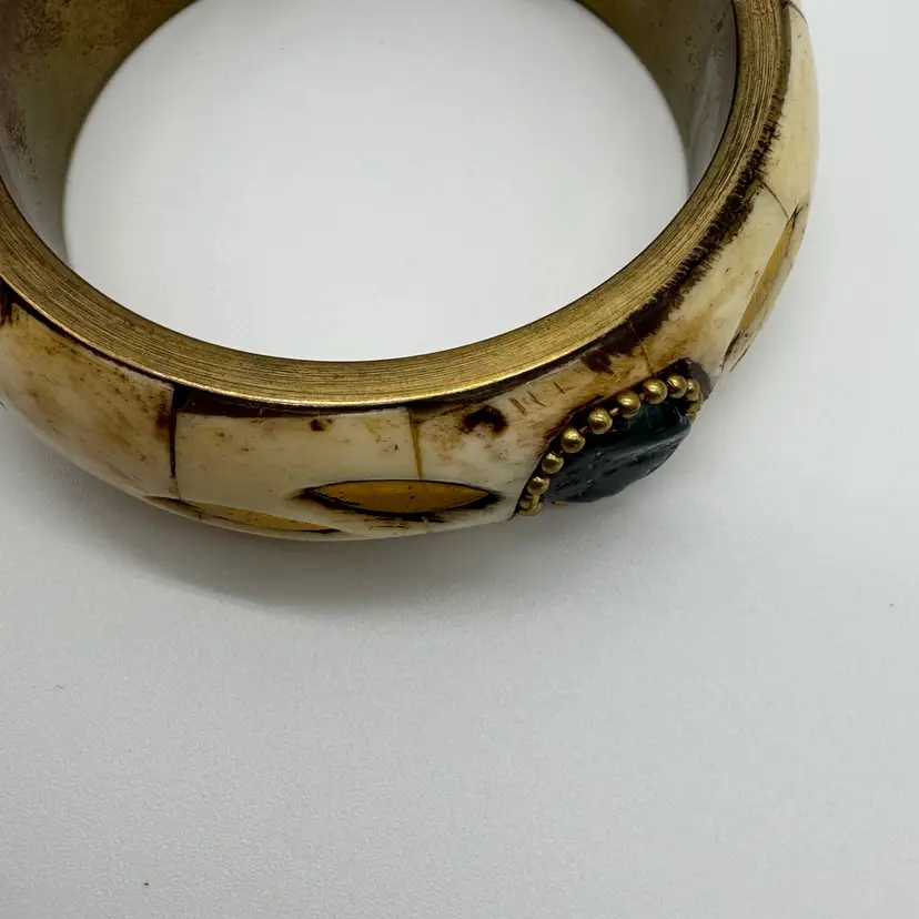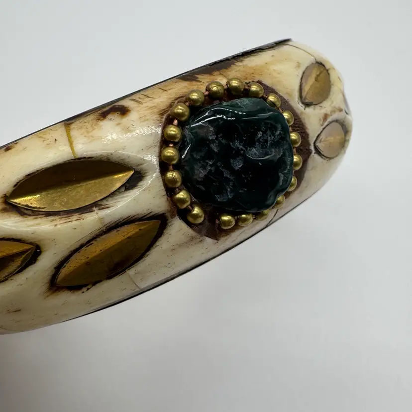 Vintage 1970s Brass and Bone Bangle Bracelet with Semi Precious Stones A very Boho style bracelet perfect for the fall autumn season. Tested with a Gem Stone Presidium Tester - Tourmaline-Garnet-Howlite In nice preowned vintage condition. Duties and Tariffs rates are already included in the shipping price
