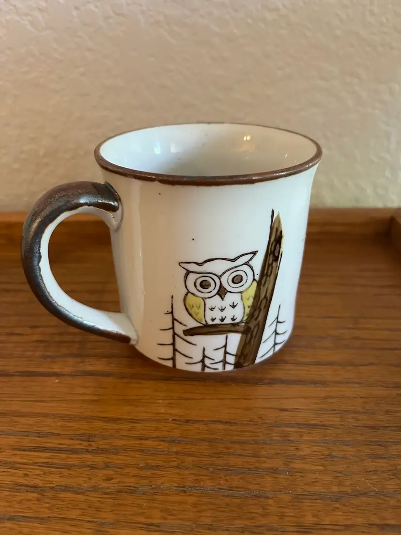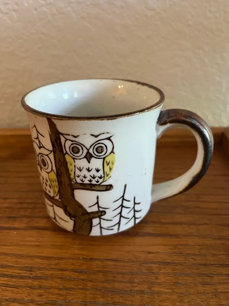 Vintage 1970s Otagiri stoneware mug with a charming owl design.