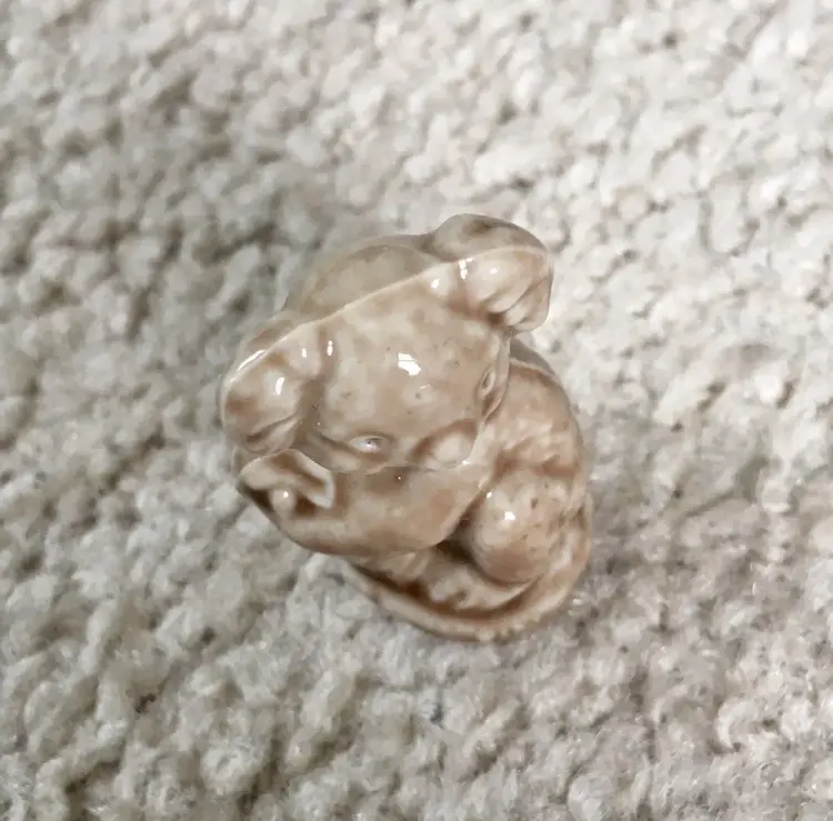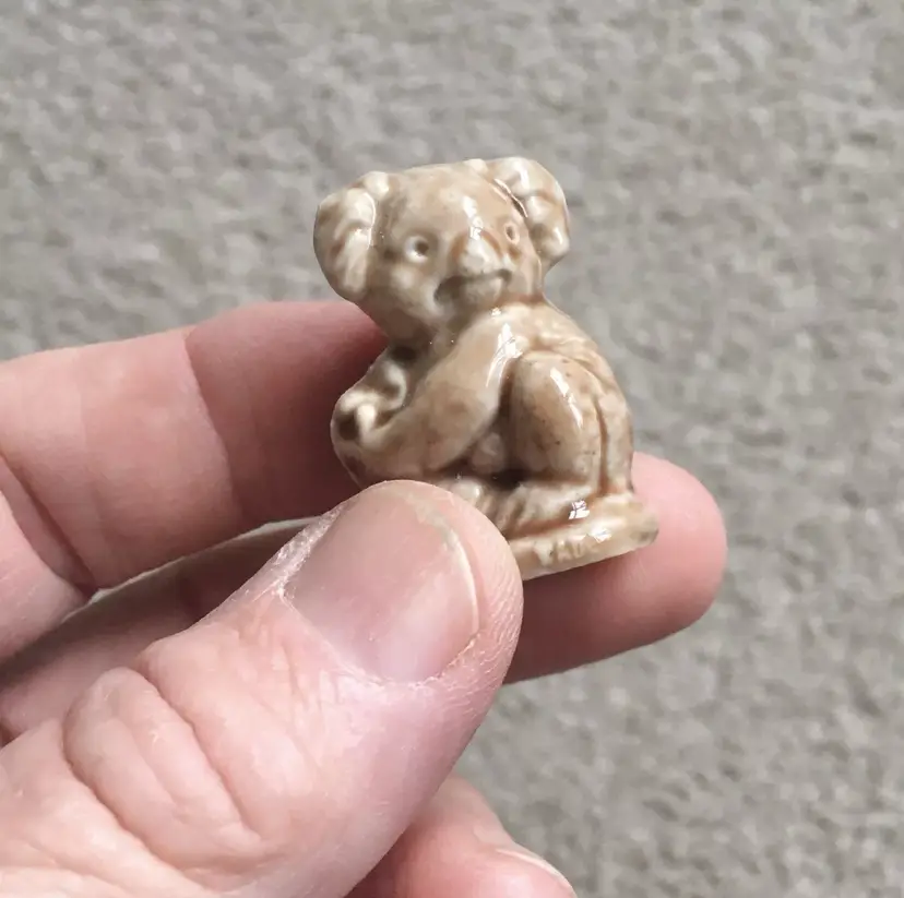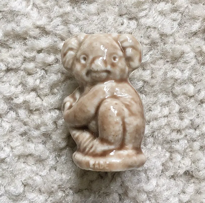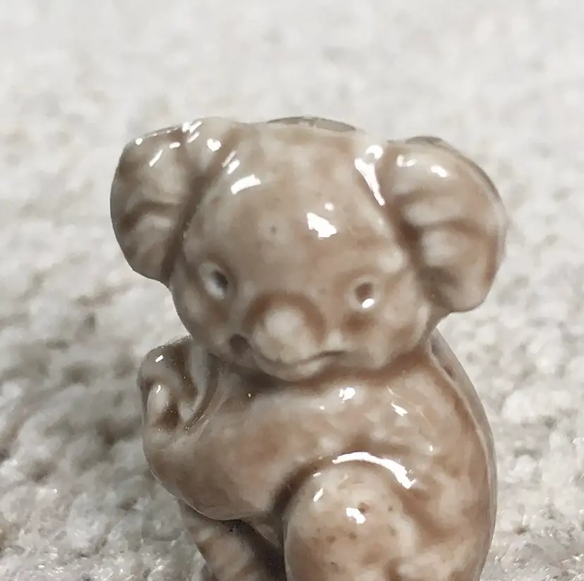 Vintage Wade Whimsies porcelain koala bear miniature tan figurine made in England. Dates to the 1970s. In the 1950s, Wade began working with the talented modeller William Harper, who worked on developing the now famous Wade Whimsies concept which are now known and highly-sought the world over. Like New Condition. No chips or any signs of wear. Beautiful shelf item!! Measures about 1.5” high. See pics for more details.