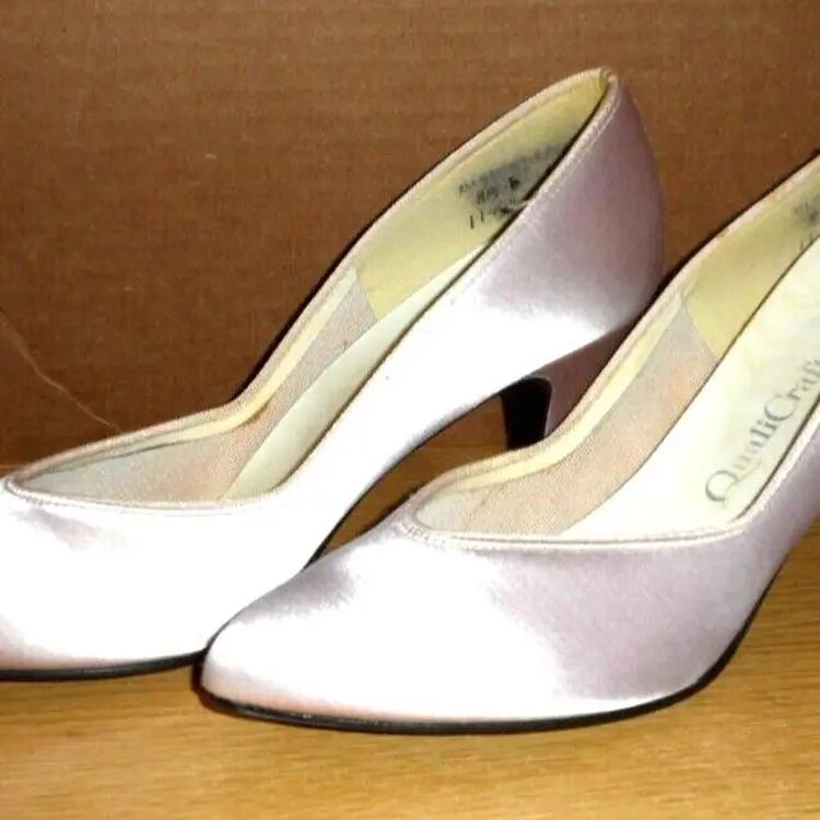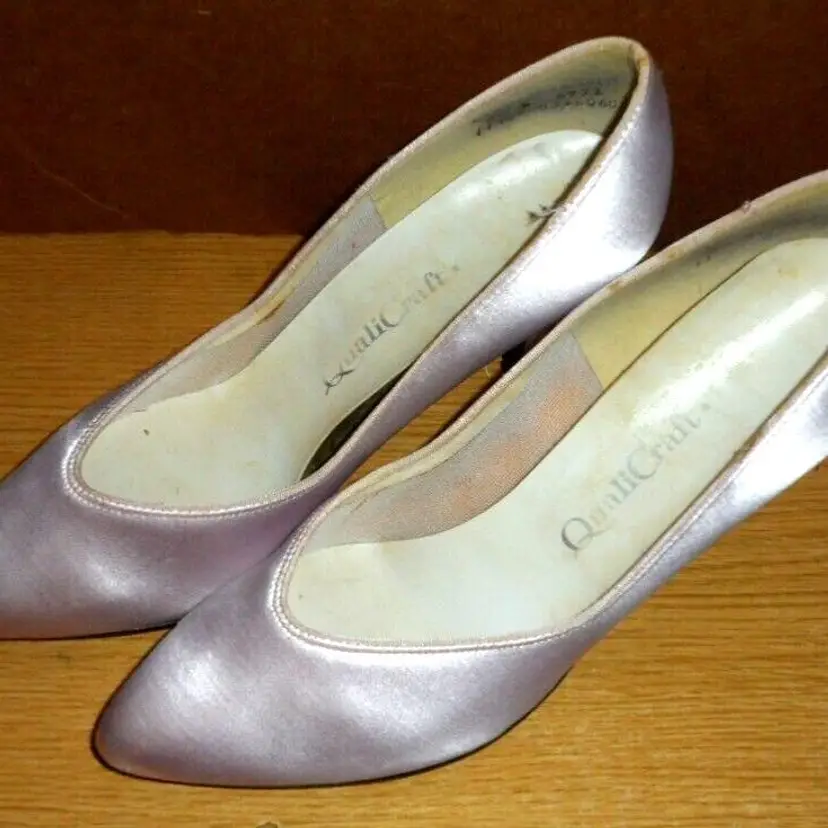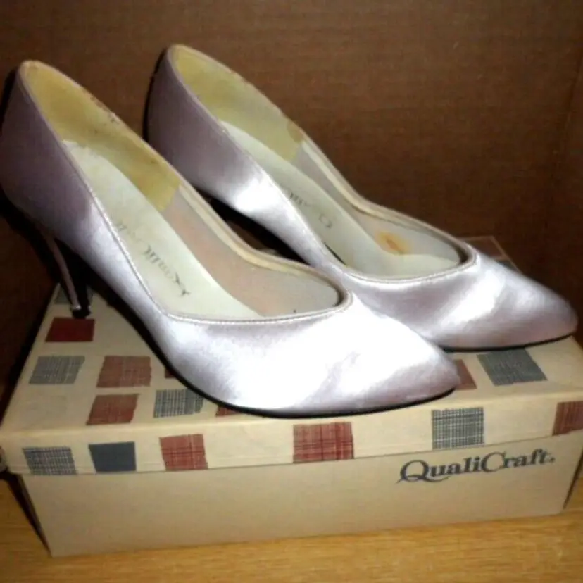 Vintage 1972 Metallic PINK Pinup Heels by Quality Craft Size 81/2 B in Original Box
