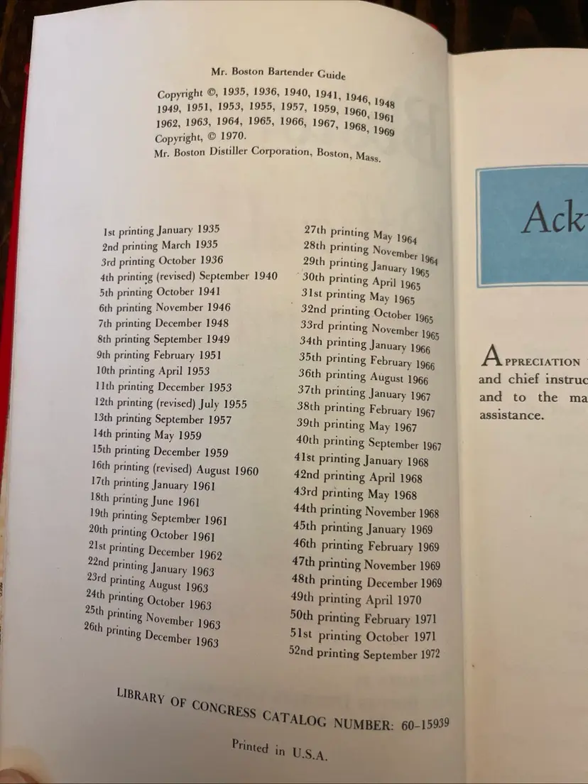 Vintage 1972 Old Mr. Boston Deluxe Official Bartender's Guide Book