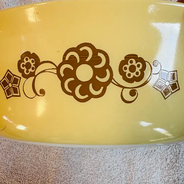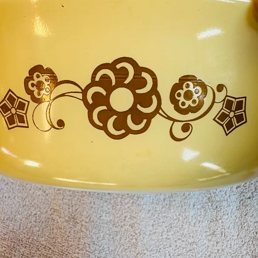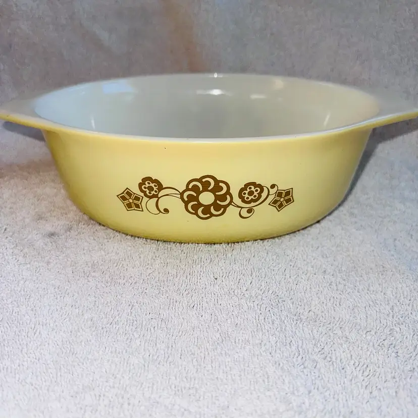 Excellent Condition Vintage 1973 Pyrex Kim Chee Yellow Promotional Oval 1 1/2 Qt Casserole Dish #043- No Lid. No Chips, Cracks Or Repairs. Design on Both Sides Of Dish is In Great Condirion And Not Faded Or Scrubbed Off. Vintage Pyrex Should Not Be Out In Dishwasher To Retain Vintage Condition. Smoke Free Home. #pyrex #vintagepyrex #1973 #043 #kimchee