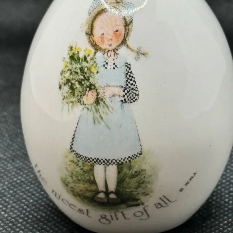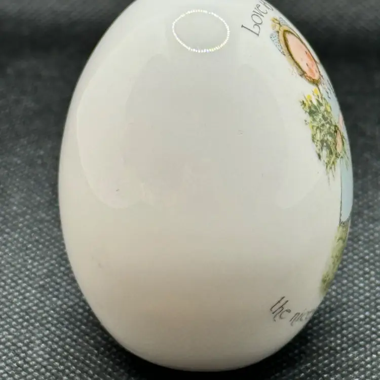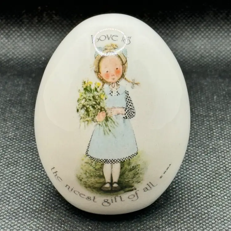 Vintage 1974 Holly Hobbie “Love Is The Nicest Gift Of All” egg shape figurine, by WWA (World Wide Arts), made in Japan. Very pretty & cute. Perfect in any room or occasion. No chips or cracks. Measures 3.5x3x1.5. Weighs 4oz.