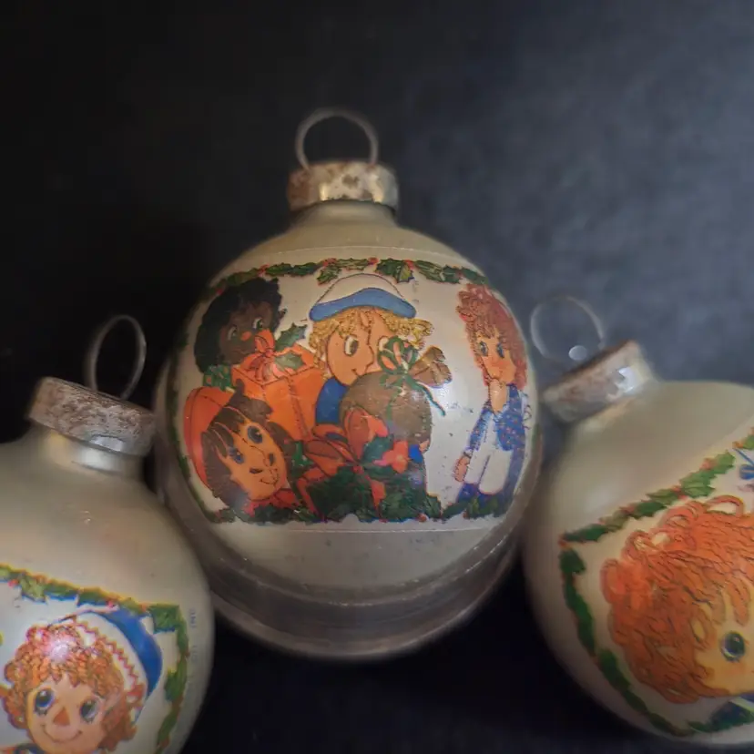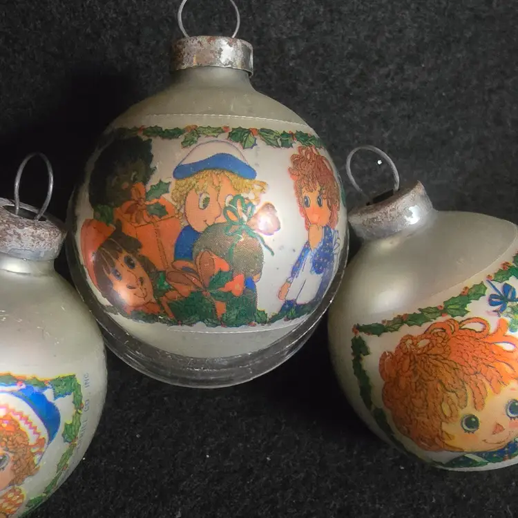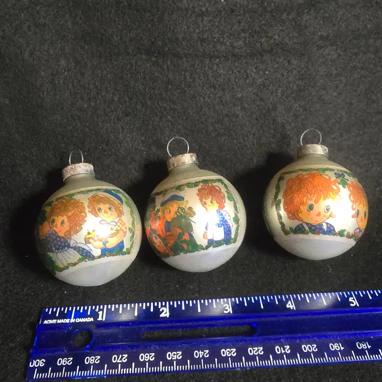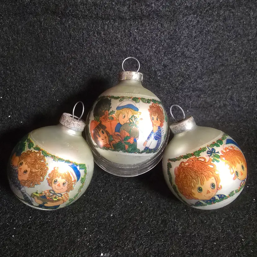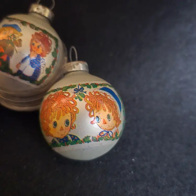 #VintageChristmas #RaggedyAnn #RaggedyAndy #BobbsMerrill #VintageOrnaments #1970sChristmas #CollectorOrnaments #GlassOrnaments