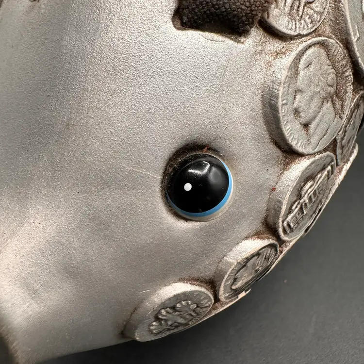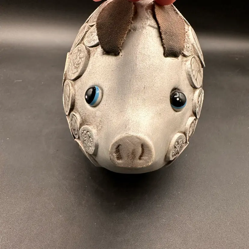 He’s adorable!! Plastic body, molded design. Original stopper intact, floppy suede ears that cover his sweet blue eyeballs. He’s a CUTIE for sure.