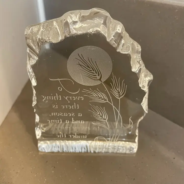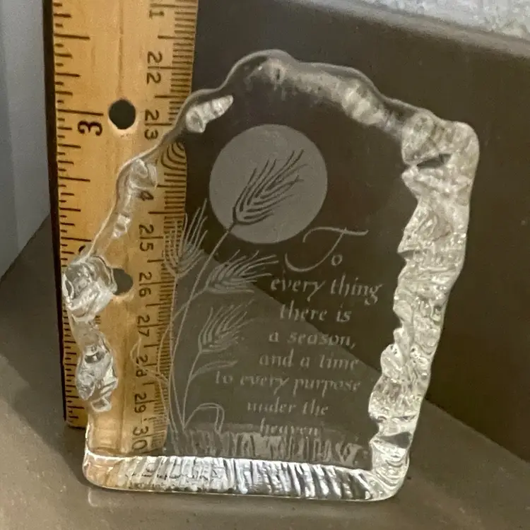 Good used condition. Some wear scratching on the back but not really noticeable . Wonderful bible verse etching on the front .