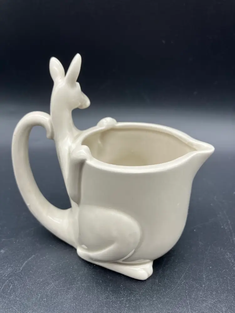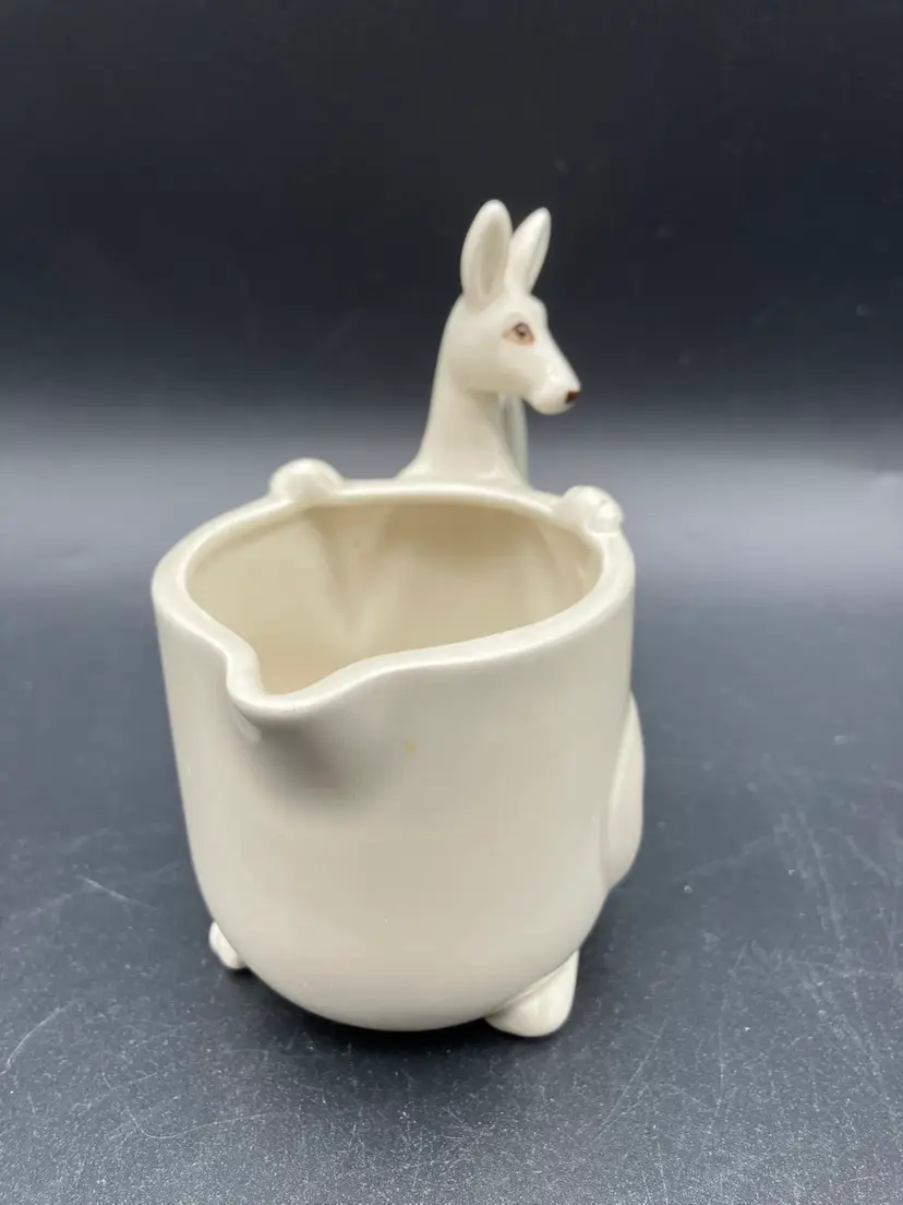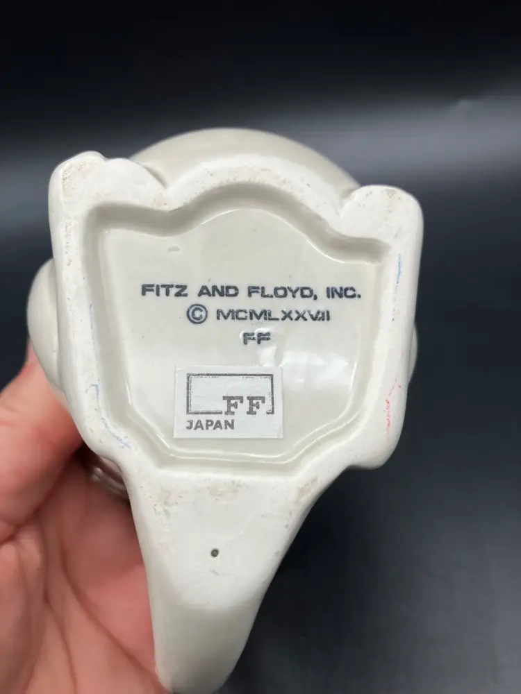 Adorable cream pitcher held by a kangaroo! Made n Japan by Fitz and Floyd. Measures 4.25” tall by 4.25” long by 2 75” wide. Excellent condition.
