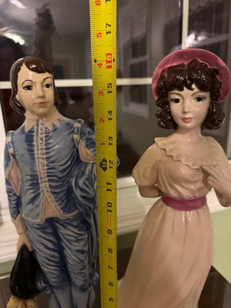 The Vintage 1979 Holland Boy and Girl Ceramic Figurine, titled "Pinky & Blue," is a charming collectible statue hand-painted with intricate details. Standing at 17 inches tall, this porcelain figurine depicts a boy and girl, making it a perfect addition to any home decor collection. The nostalgic charm of the piece, coupled with its high-quality craftsmanship and unique design, makes it a standout piece for collectors and art enthusiasts alike.